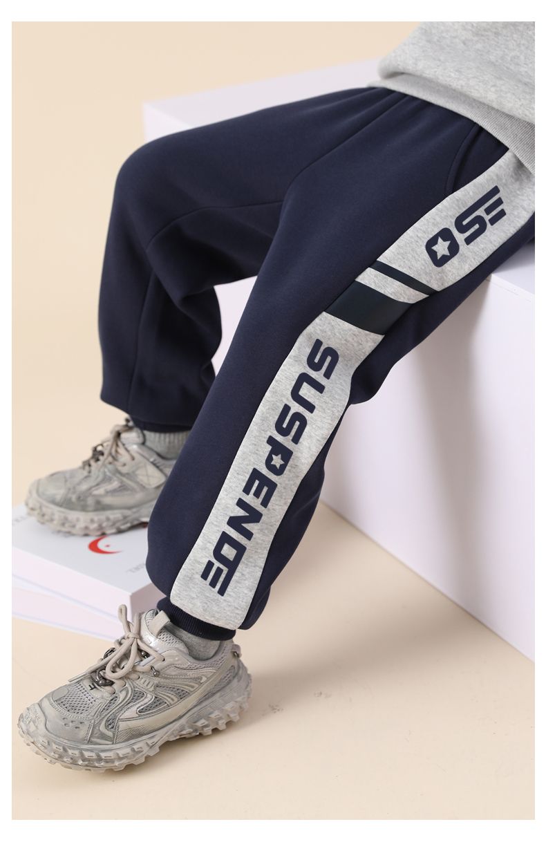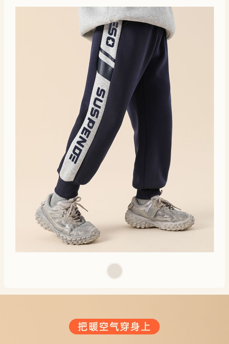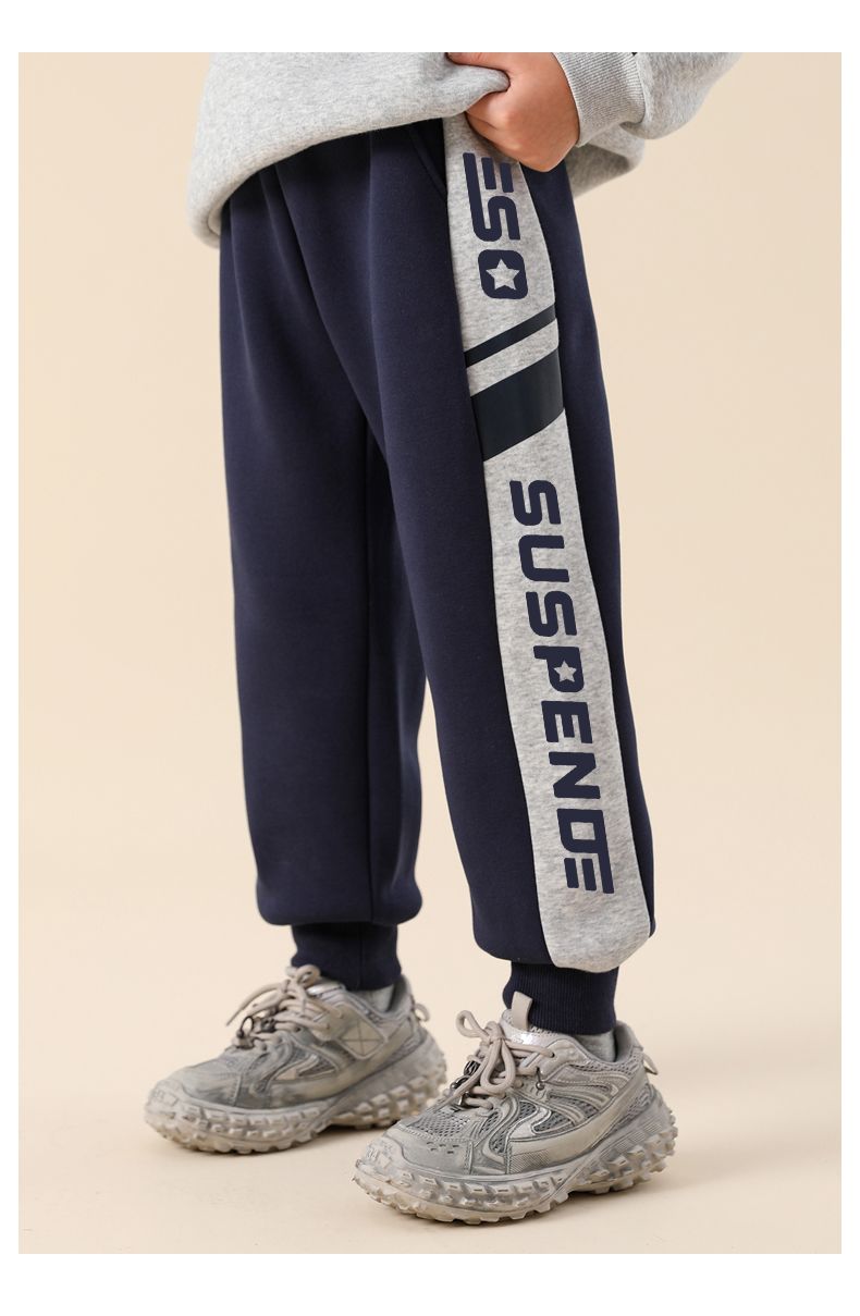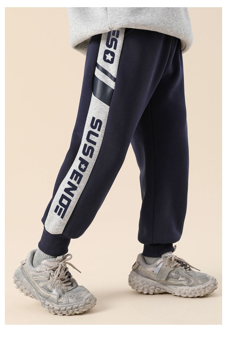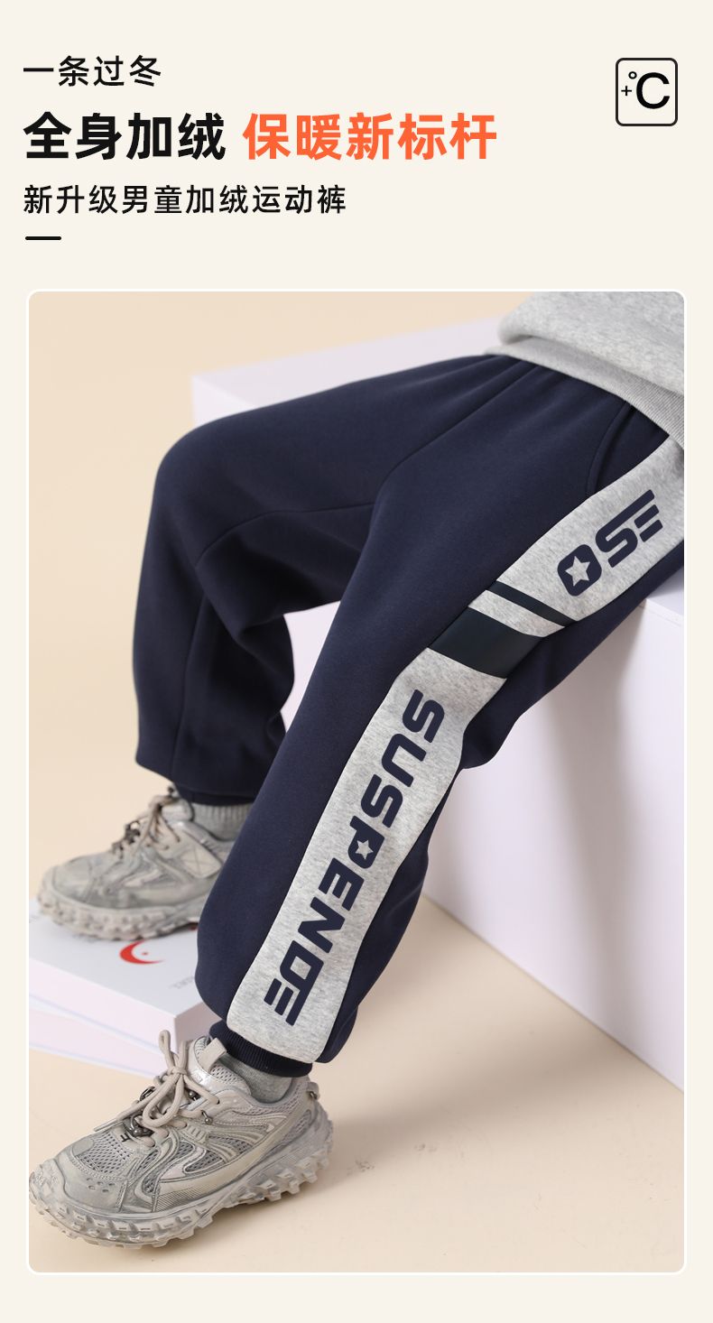 贝田2025新款男童裤子加绒一体绒冬季保暖棉裤儿童酷帅休闲运动裤