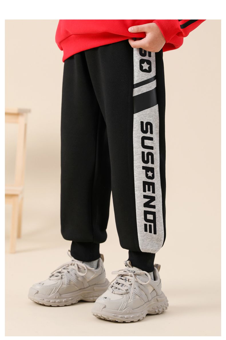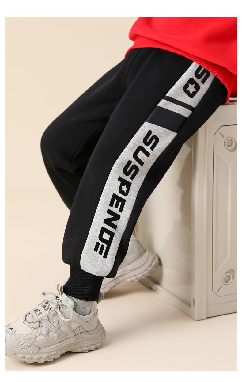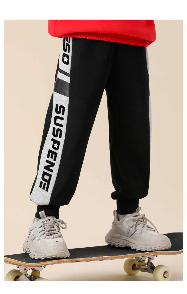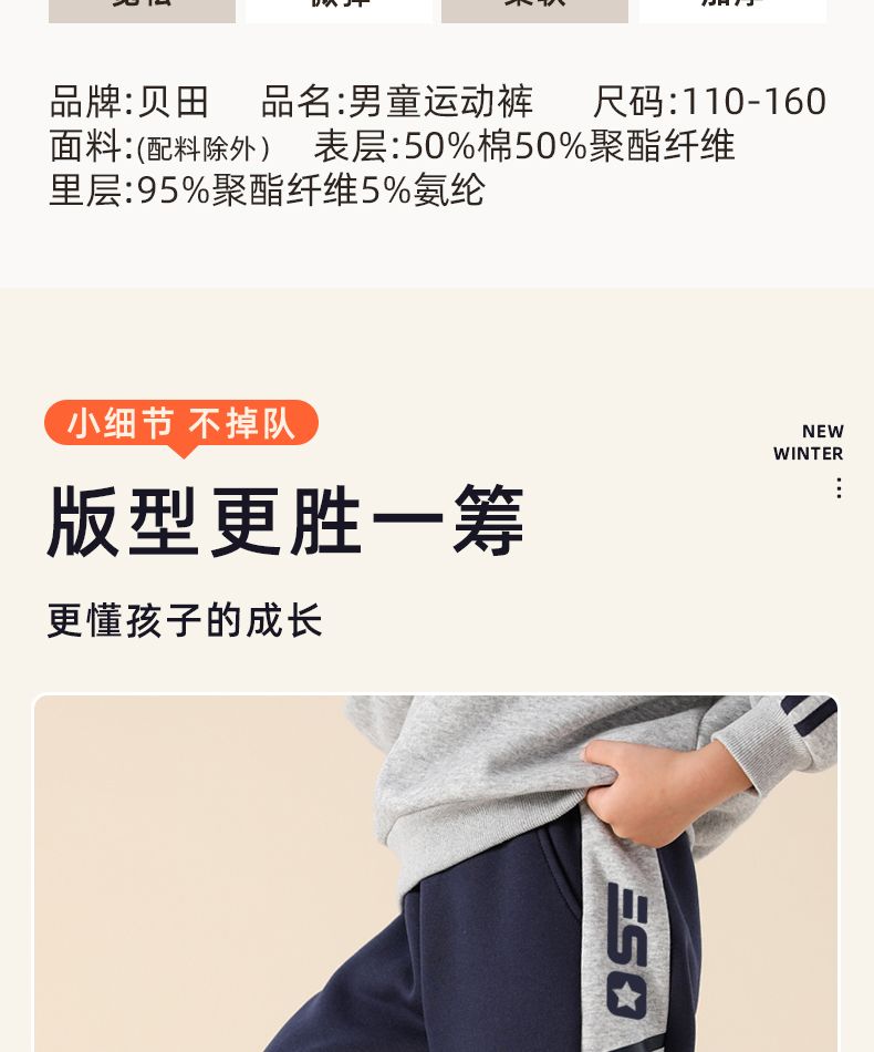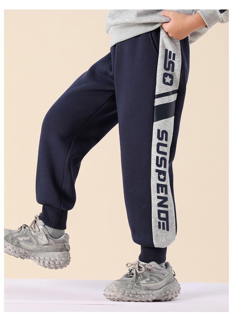 贝田2025新款男童裤子加绒一体绒冬季保暖棉裤儿童酷帅休闲运动裤