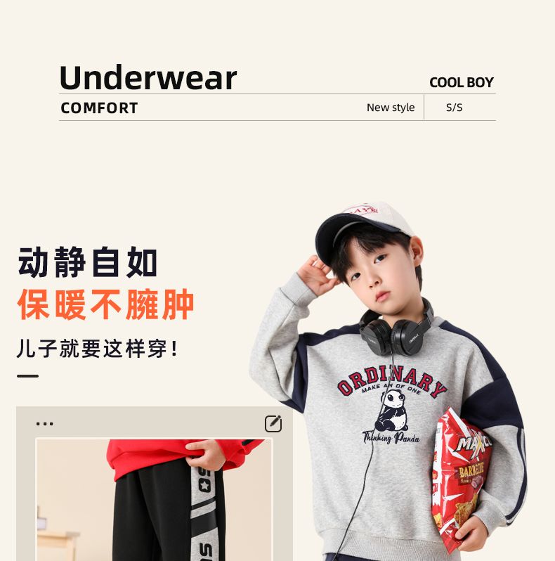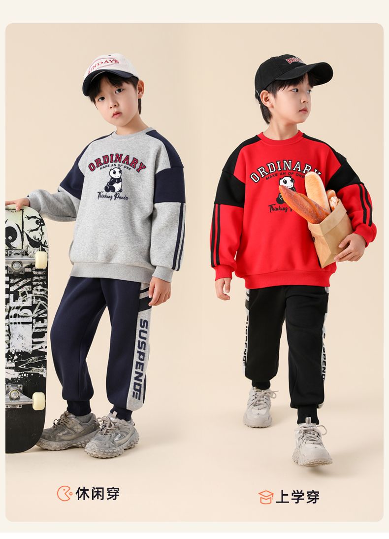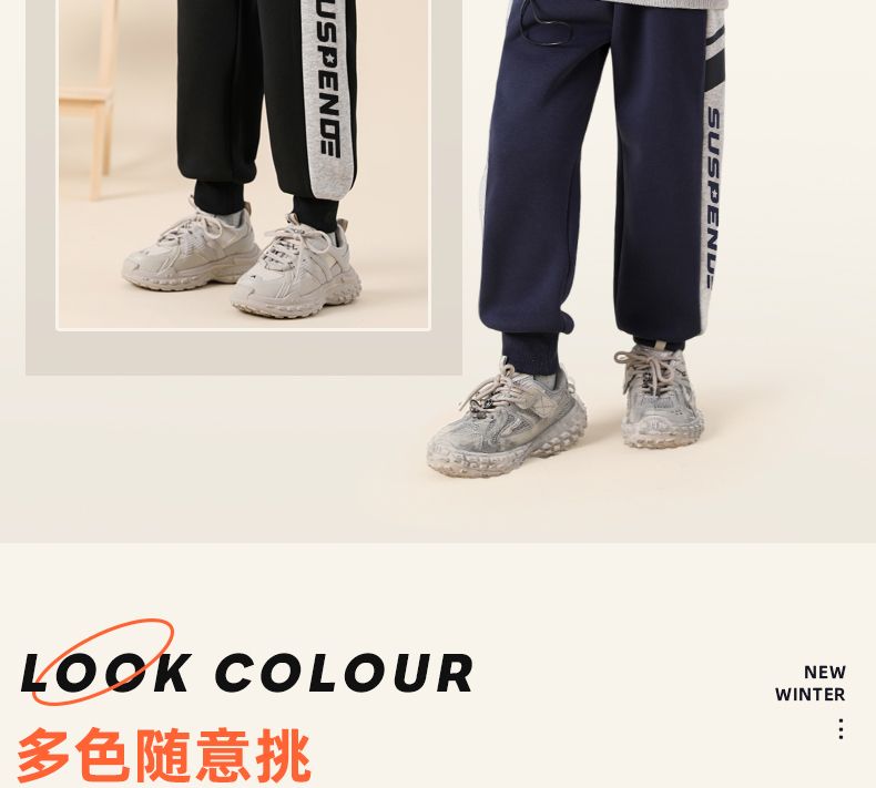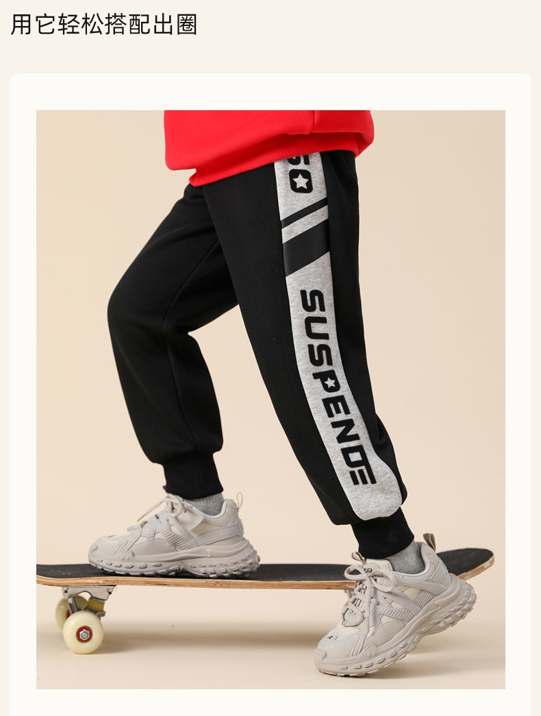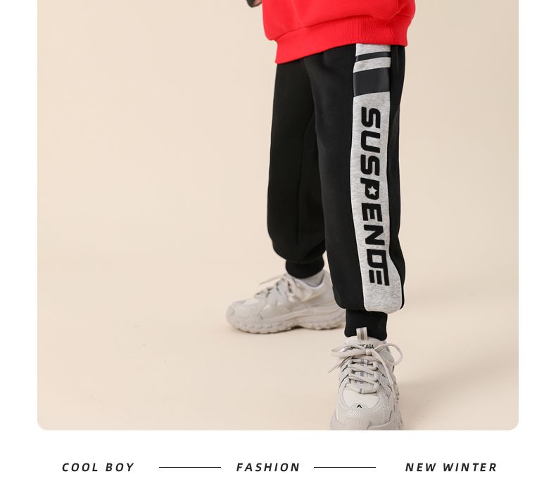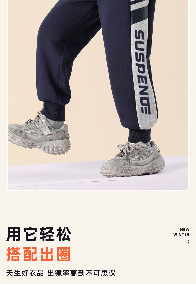贝田2025新款男童裤子加绒一体绒冬季保暖棉裤儿童酷帅休闲运动裤