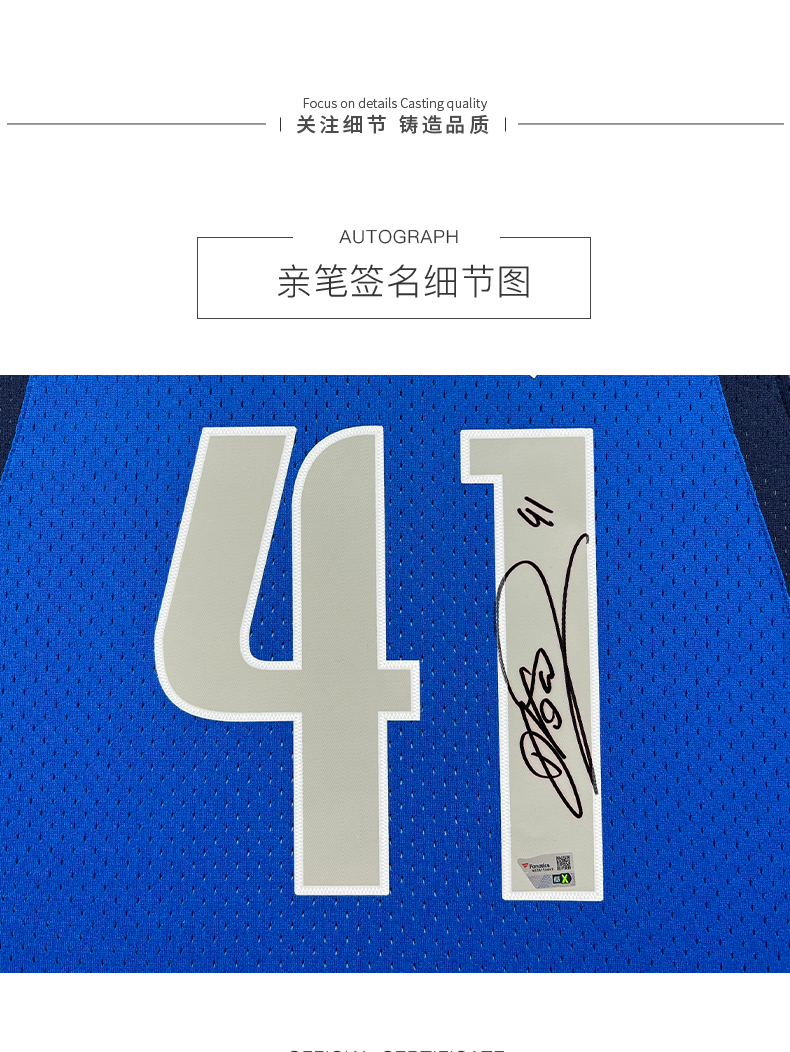 收藏系列 诺维斯基 41号蓝色球迷版 亲笔签名球衣