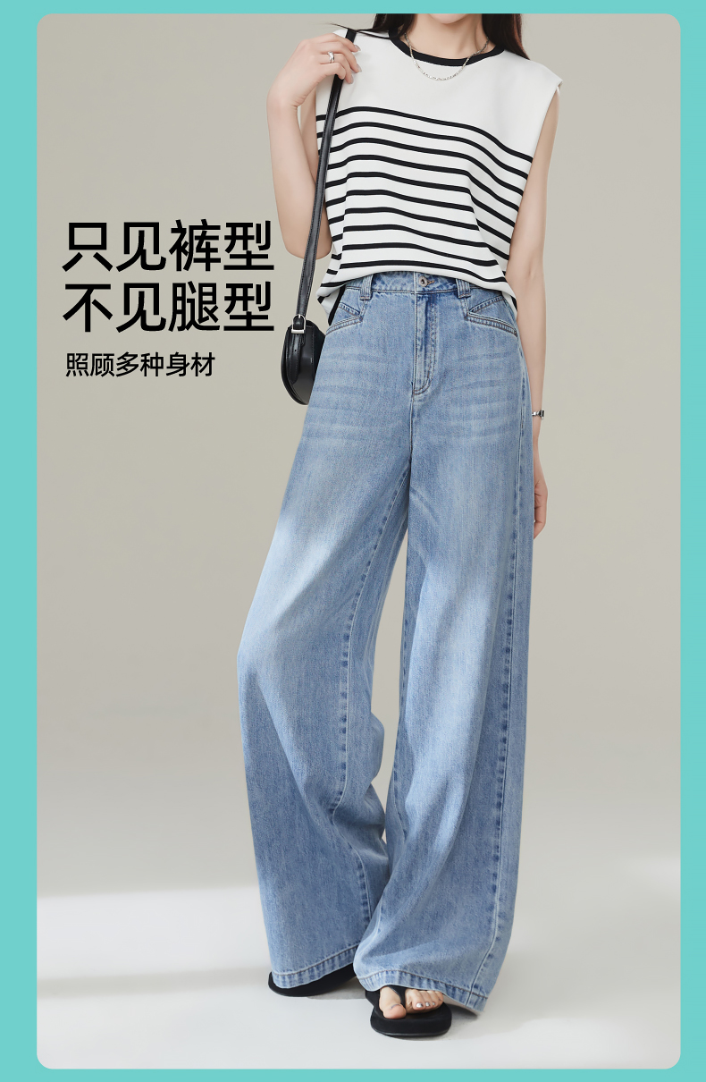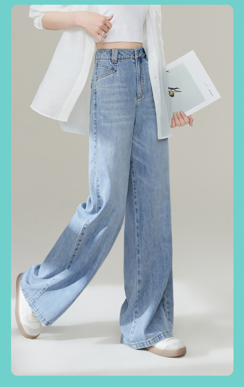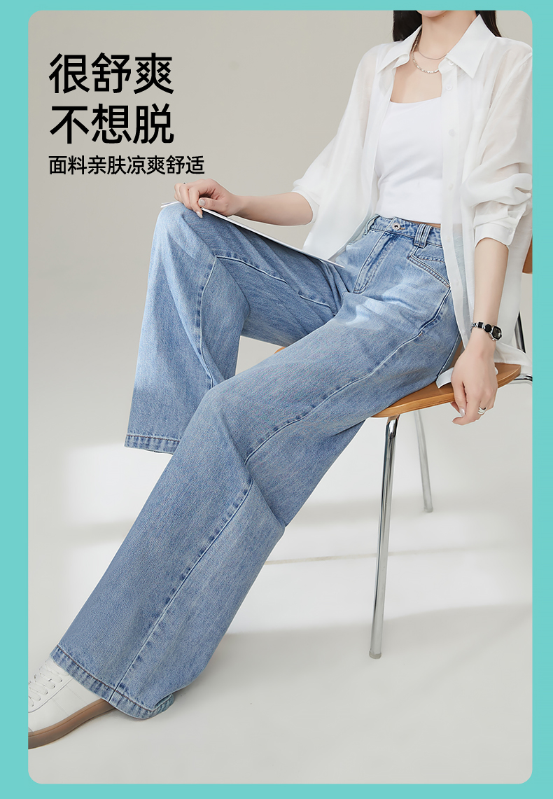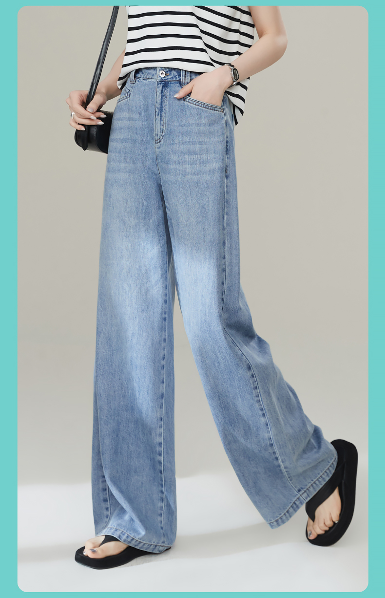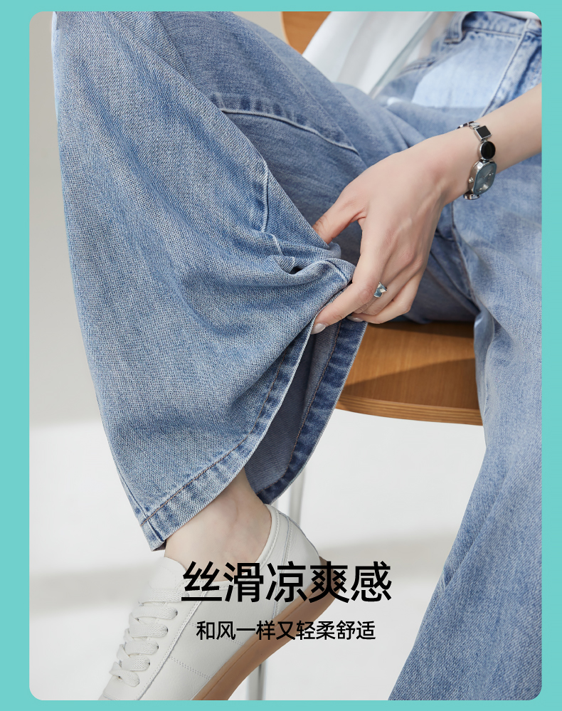 【柔顺天丝棉阔腿裤】逸阳夏薄垂感透气宽松显瘦牛仔长裤子6390