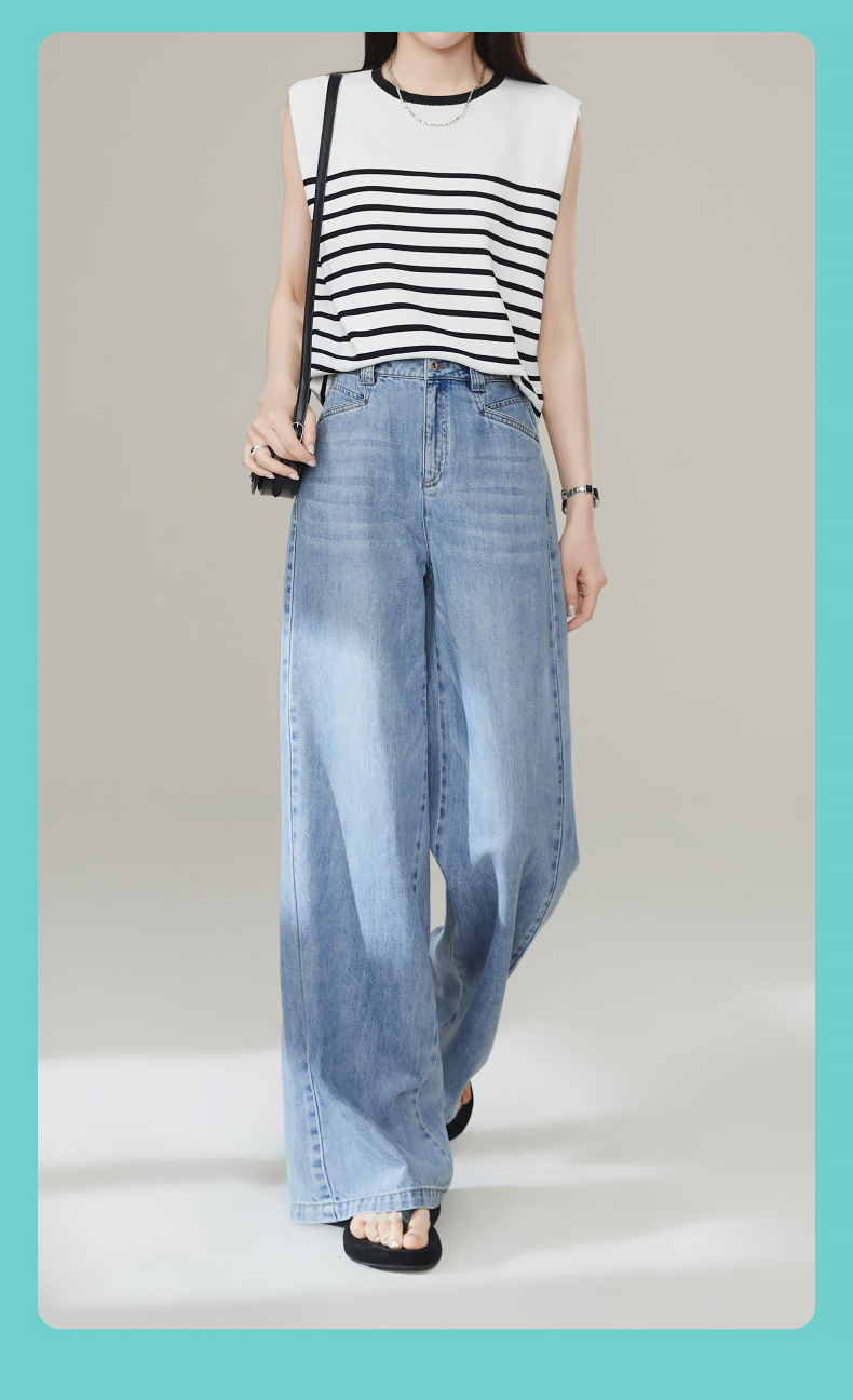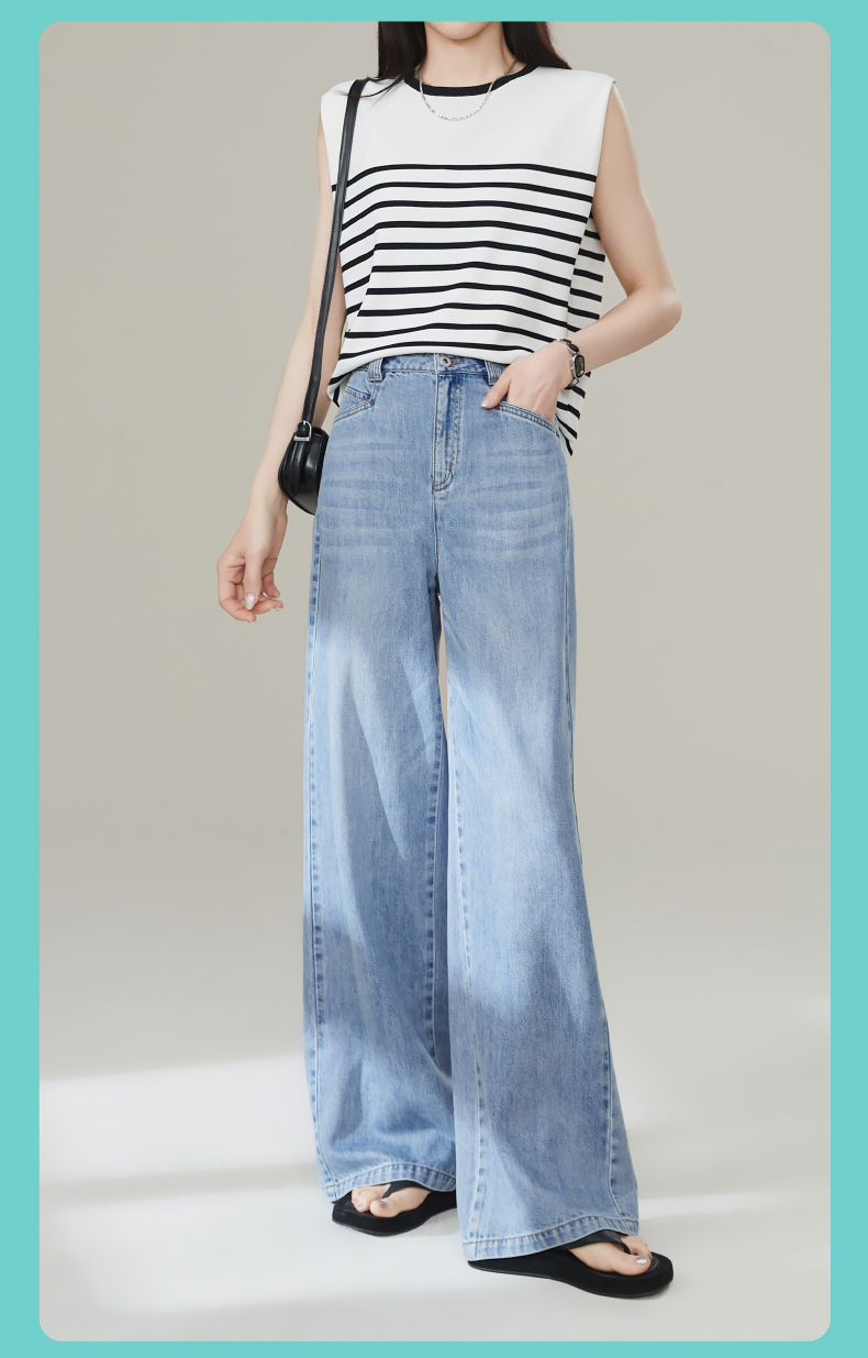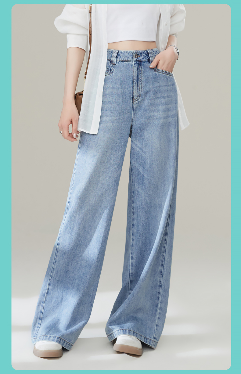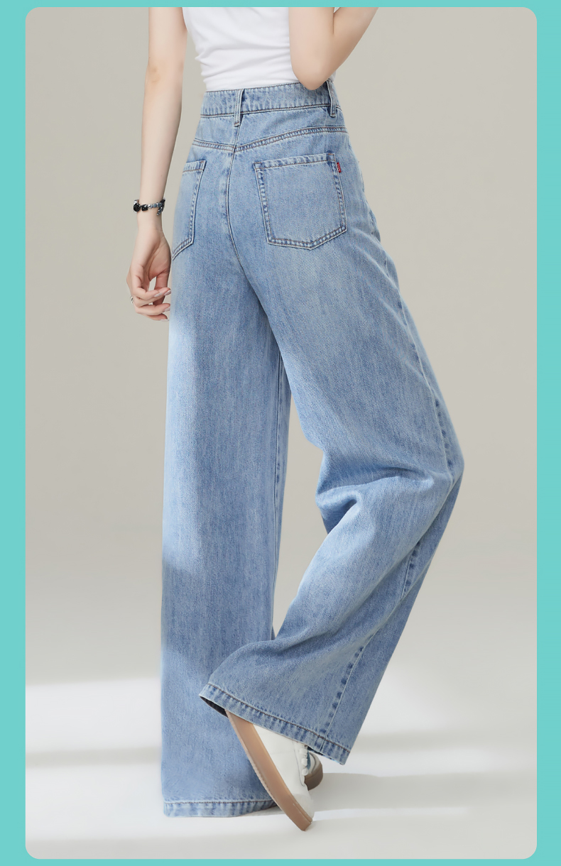 【柔顺天丝棉阔腿裤】逸阳夏薄垂感透气宽松显瘦牛仔长裤子6390