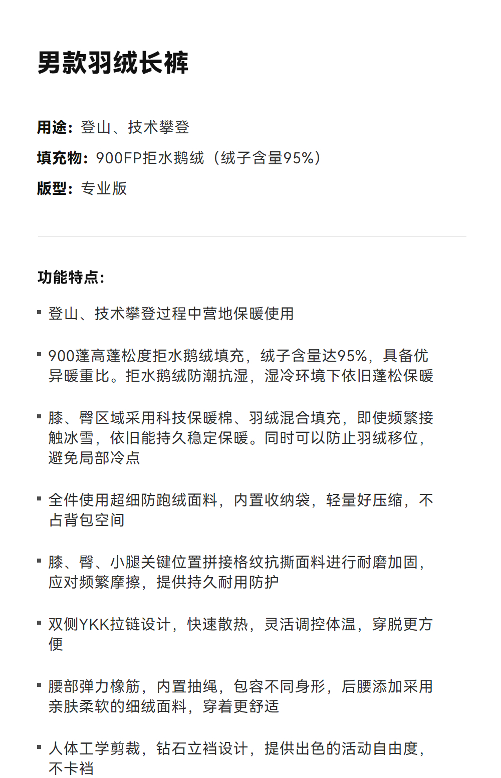 KAILAS凯乐石 男款羽绒长裤 KG2543303