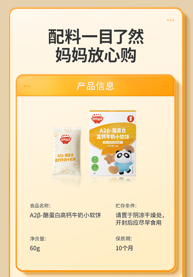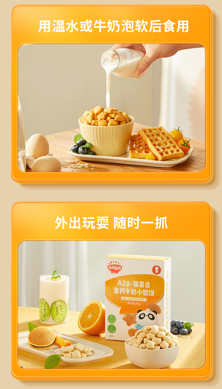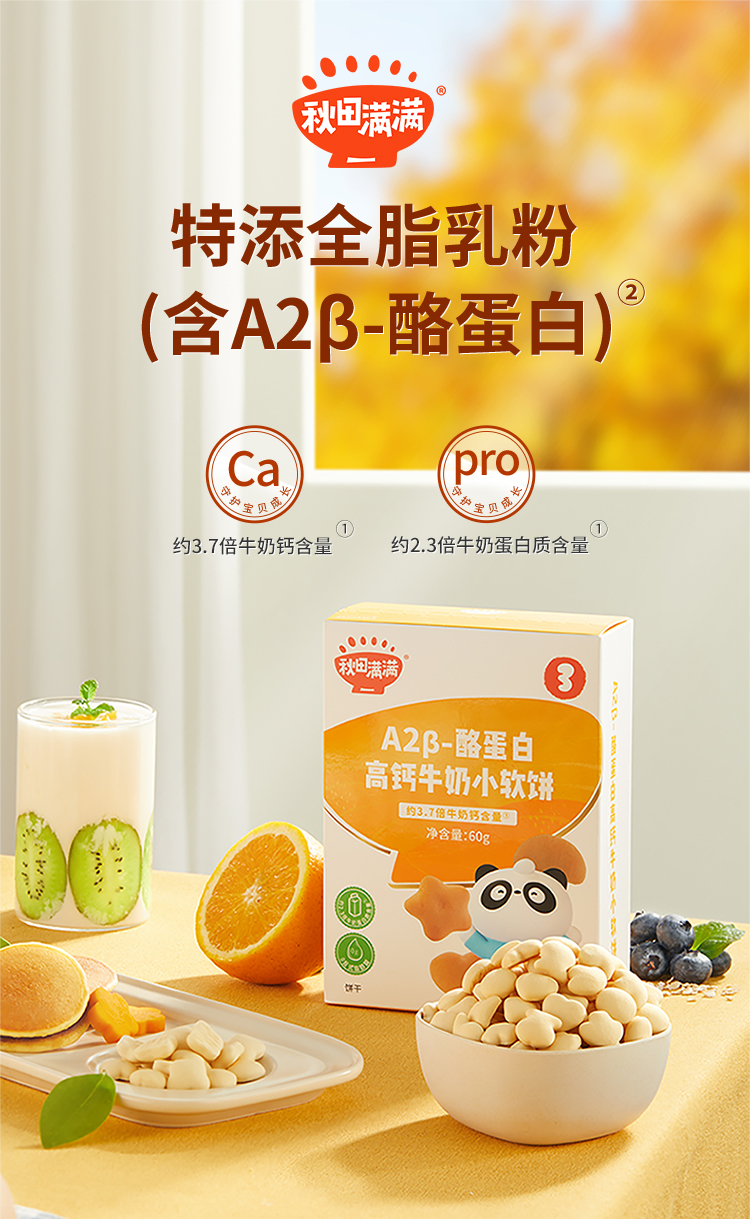【品牌直供】秋田满满A2β-酪蛋白高钙牛奶小软饼60g