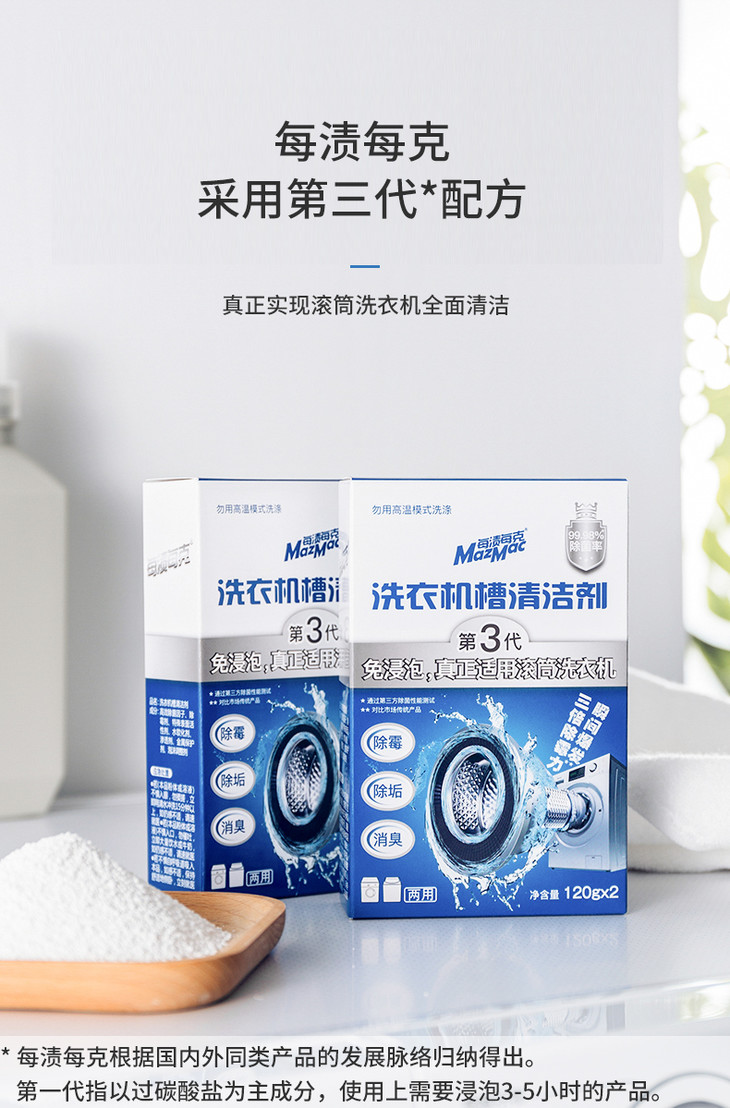 【免浸泡无死角深度清洁】每渍每克MazMac洗衣机槽清洁剂 适合滚筒/波轮洗衣机 免浸泡深度去污去菌 无需捞污渍 除臭除霉除垢