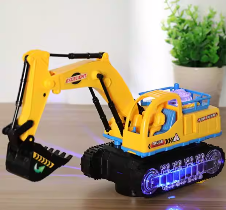 Z104儿童挖掘机玩具男孩闪光玩具车电动万向工程车挖土机模型