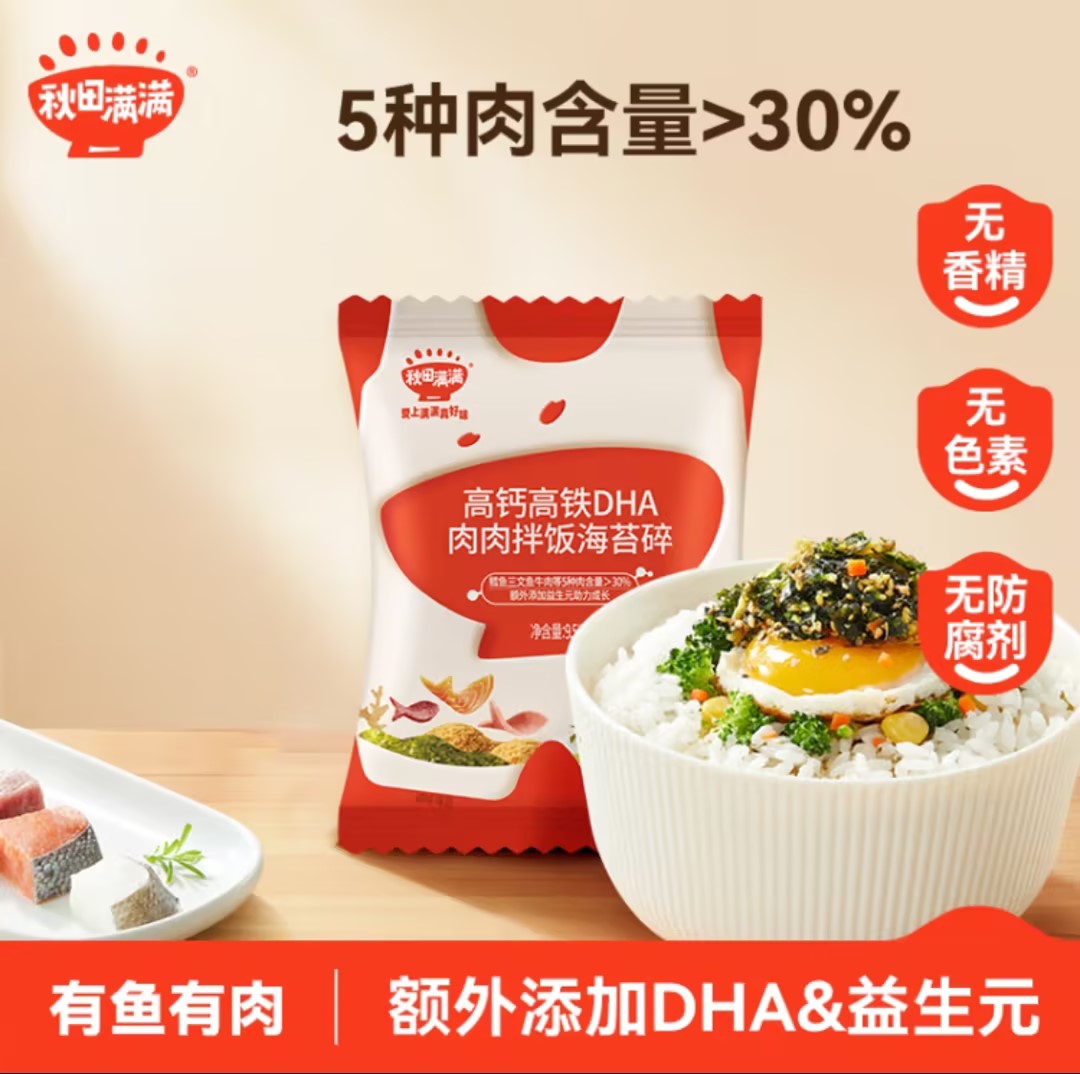 秋田满满高钙高铁DHA肉肉拌饭海苔碎9.5g 尝鲜装(3袋起购)