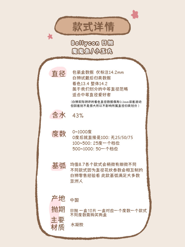 Bollycon旗下 ·日抛 ·魔鬼鱼&小玉丸· 14.2mm · 韩产日抛