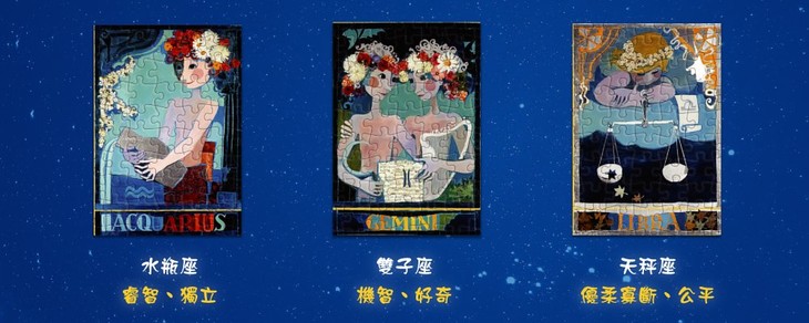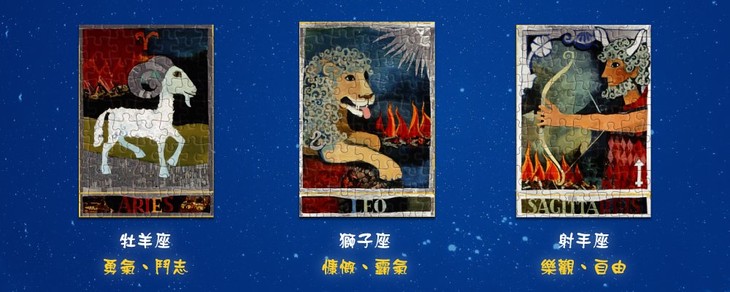 画家Wachtmeister以其擅长的缤纷画风,将风火水土,四象星座,明显区分一次呈现: