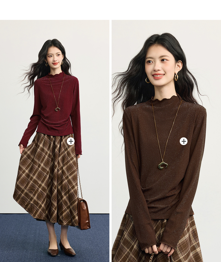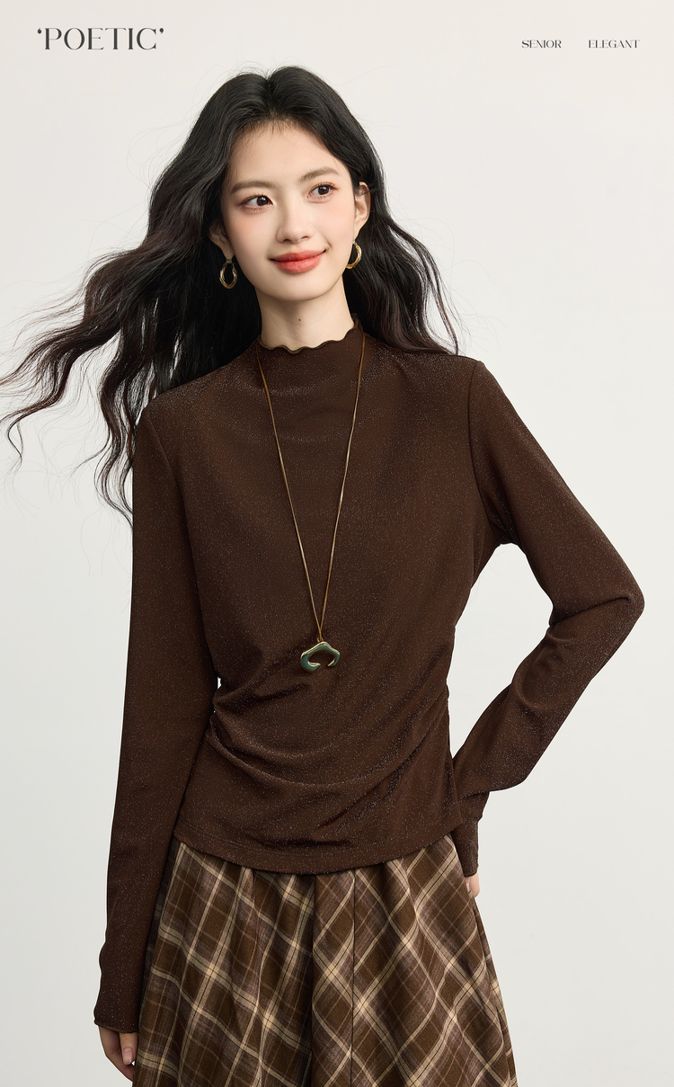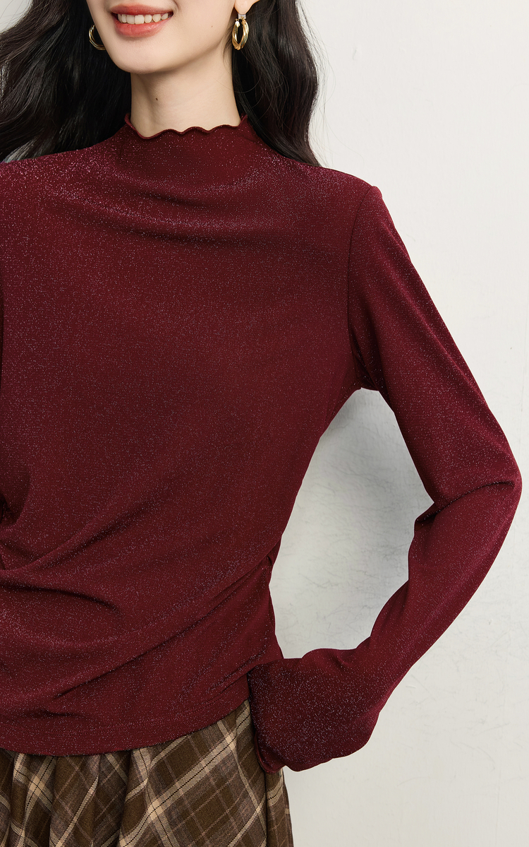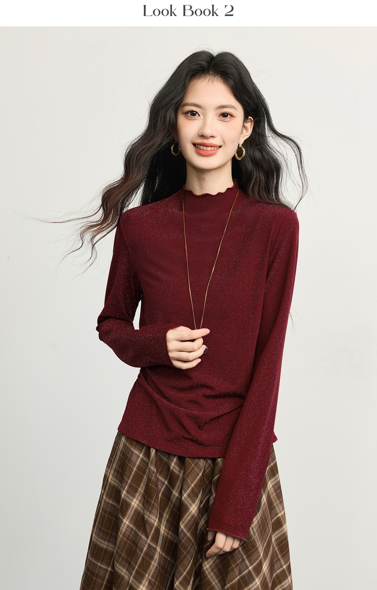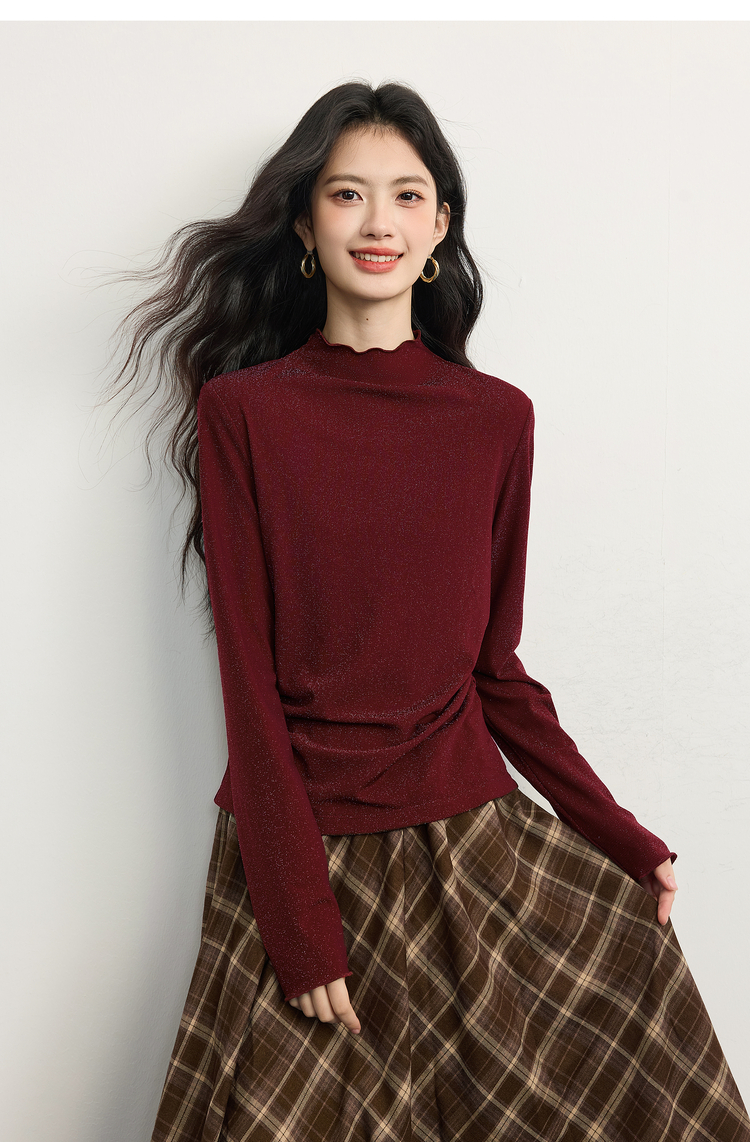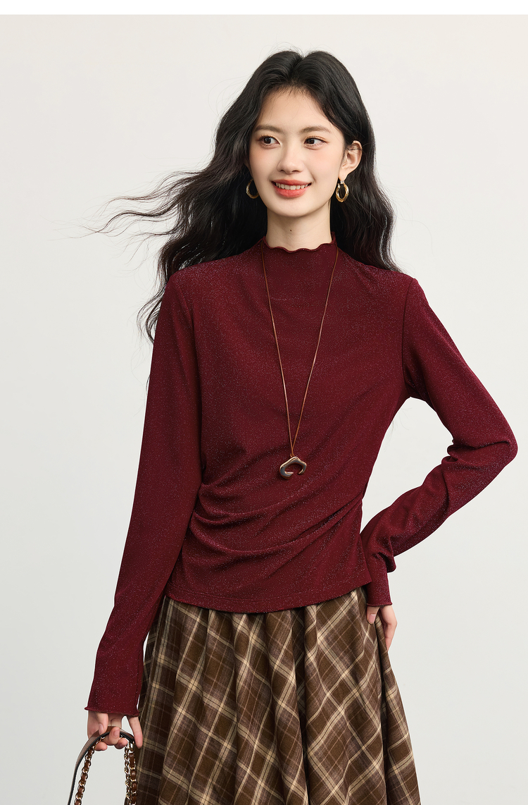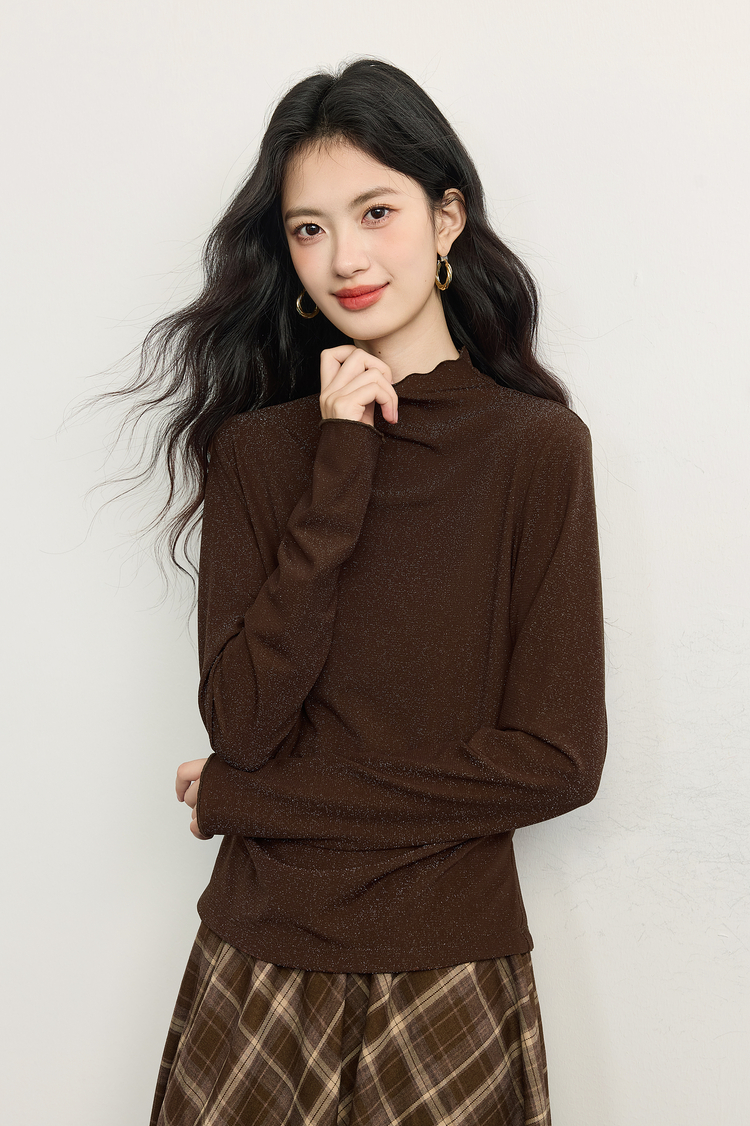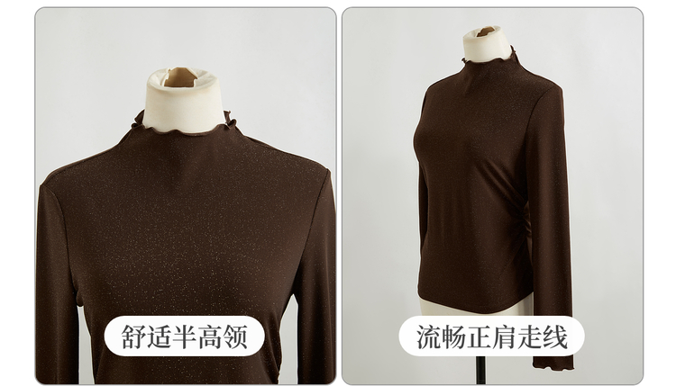【周末秒杀】熙世界「璀璨星河瘦瘦T」撒银针织T恤女长袖秋冬季内搭修身打底衫