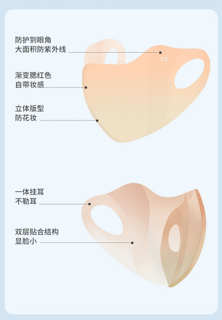 「9.9元包邮!冰感防晒口罩」夏季防晒口罩女冰丝面罩护眼角防紫外线渐变防晒冰感高颜值面罩配饰