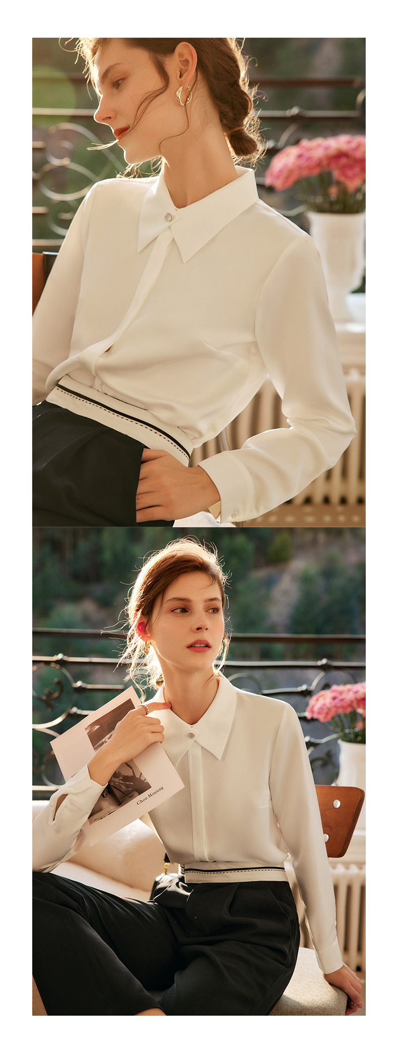 欧芮儿白色雪纺衬衫女秋季2022新款宽松显瘦法式优雅气质长袖衬衣