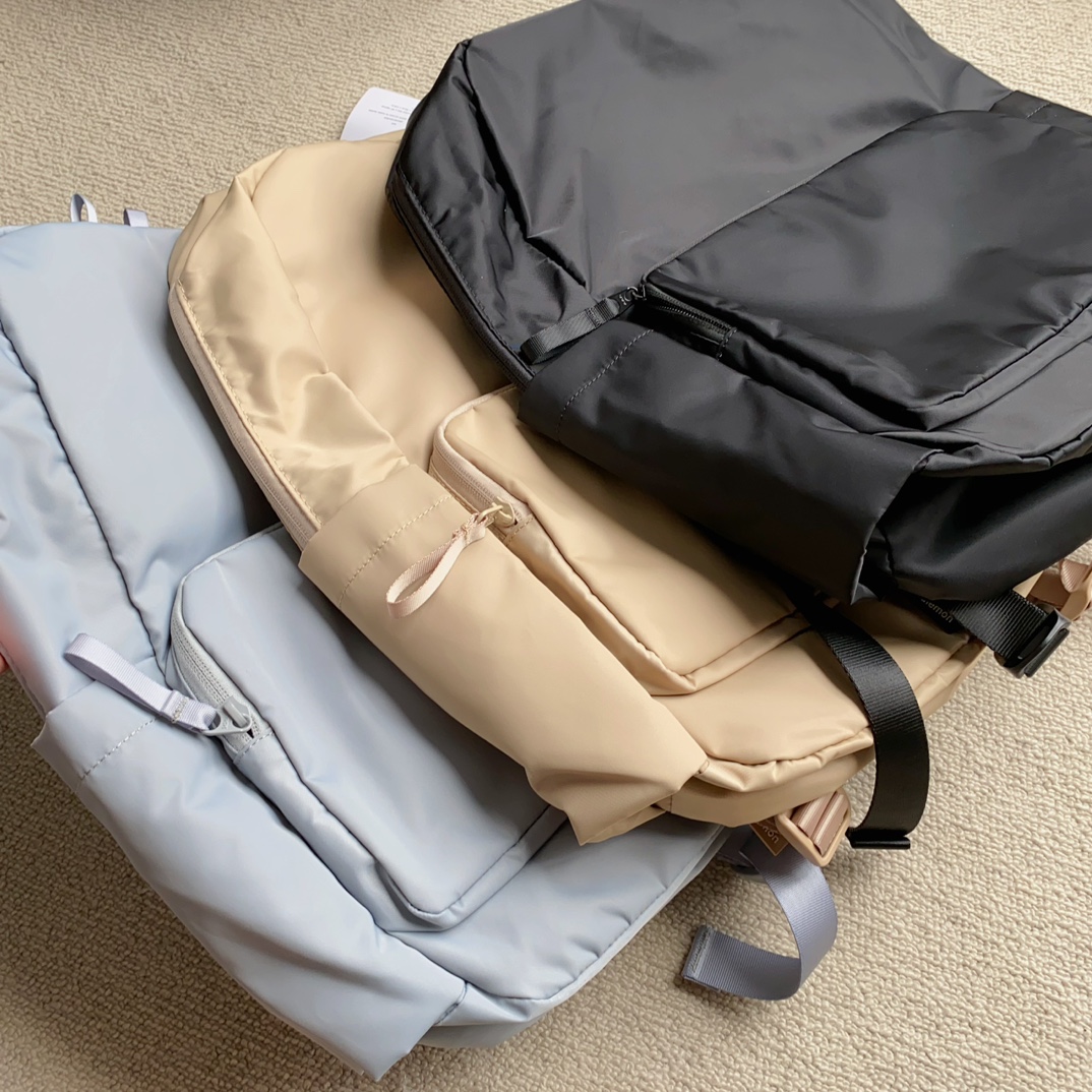 轻便尼龙材质,运动休闲风格,容量很大,内部可装16”笔记本电脑,侧面口袋设计可收纳水杯袋,非常实用。