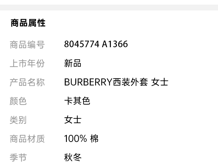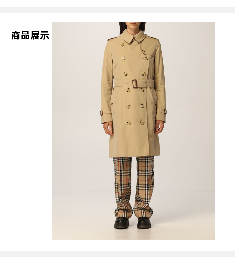 【二】BURBERRY 巴宝莉 女士肯辛顿版型 - 中长款 Heritage Trench 束腰风衣 卡其色 8045774 A1366