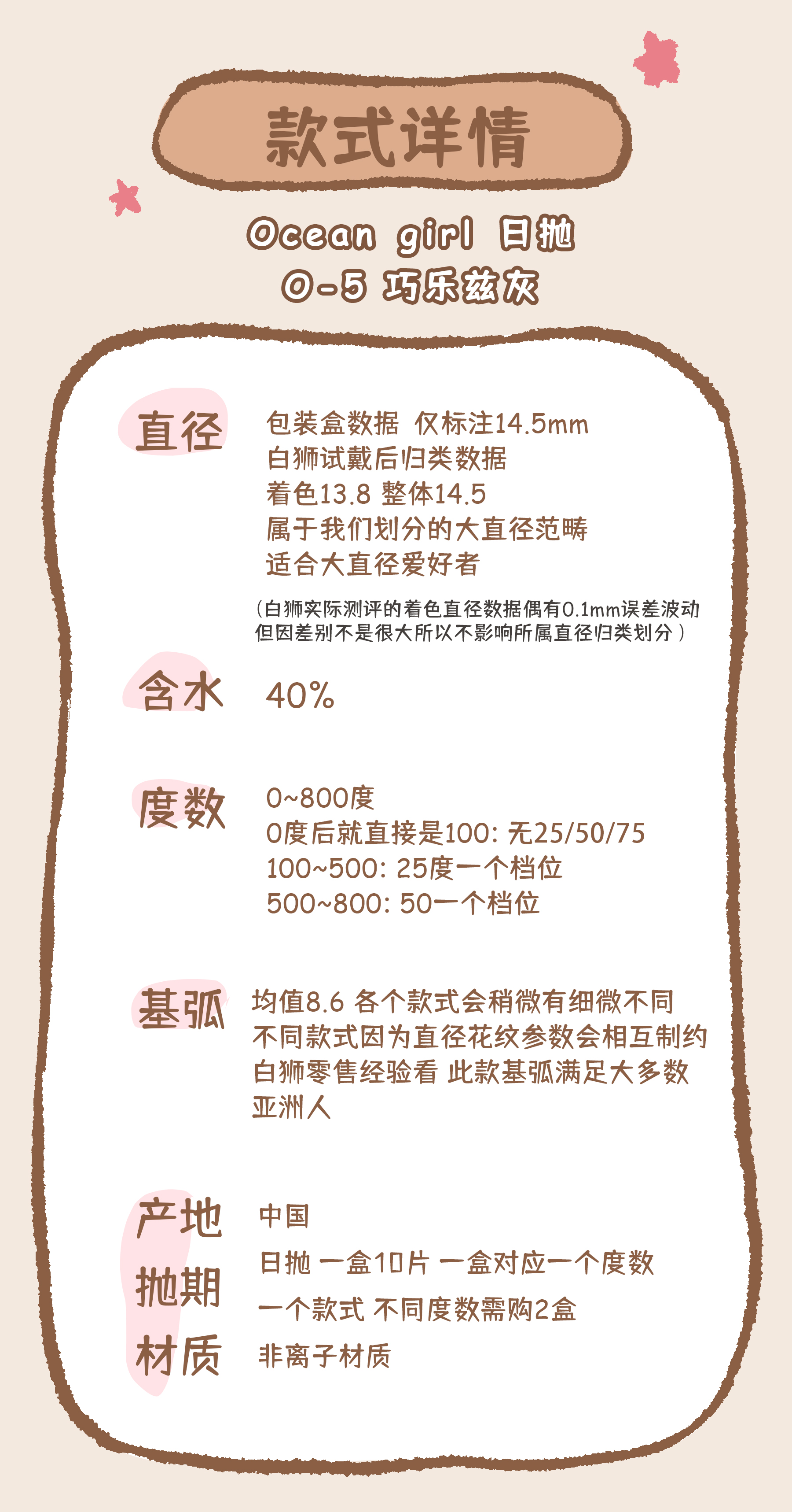 【白狮超推荐!】Ocean girl 旗下 ·日抛 巧乐兹灰 O-5 |14.5mm 大直径