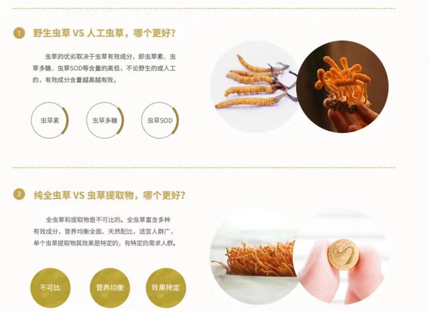 二、原草才是天然的,无论市面上说是提取还是合成,都经过了人工后期,不纯粹;这份蛹虫草是原草制作而成,不是提取物也不是合成产品,是纯天然的食物,更值得信任!