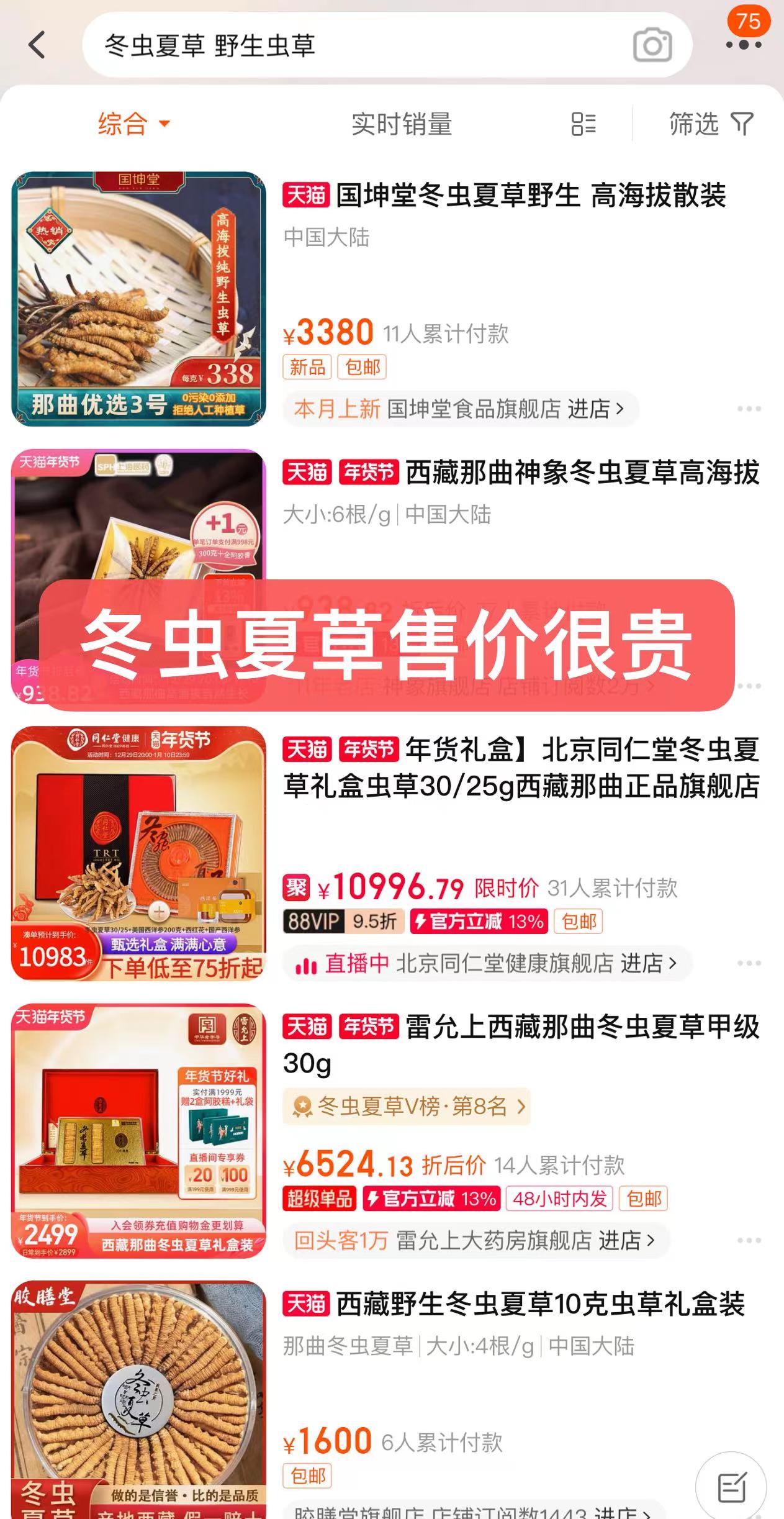 由于冬虫夏草严格的寄生性及特殊的生长地理环境,产量非常有限,市面上价格也卖的十分昂贵。