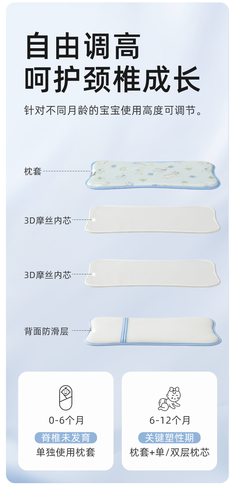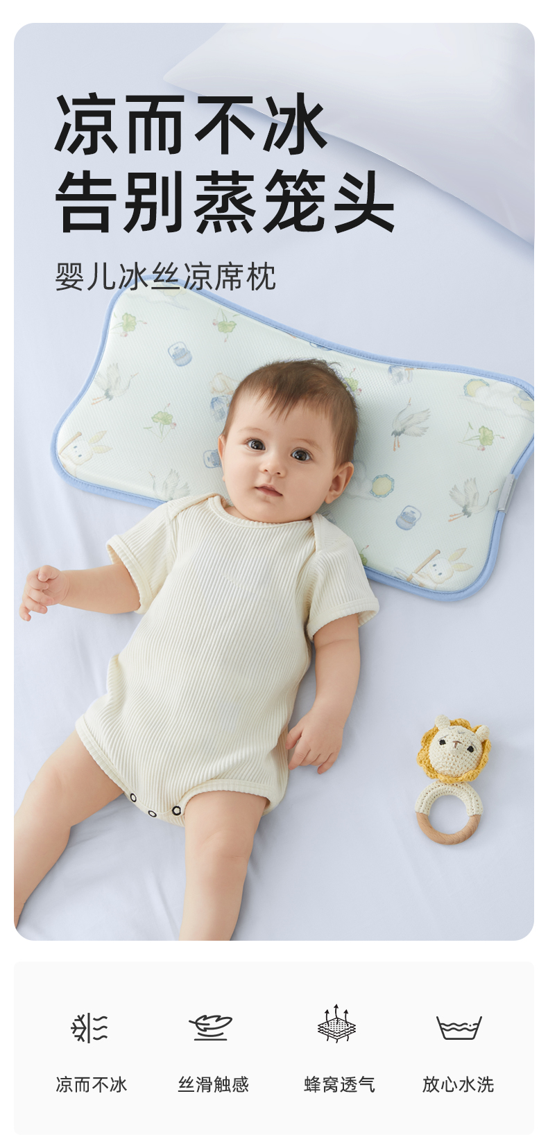 婴儿牛奶丝冰皮枕头宝宝夏季透气新生儿0到6个月以上