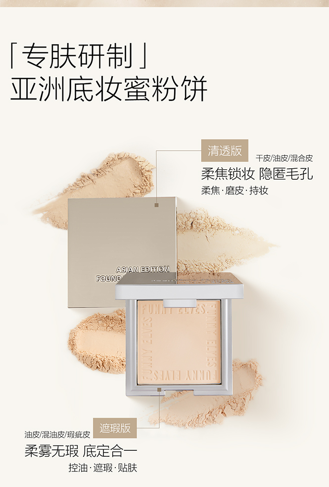 Funnyelves方里 柔焦蜜粉饼清透版/遮瑕版 磨皮柔焦 轻盈贴肤 72小时发货