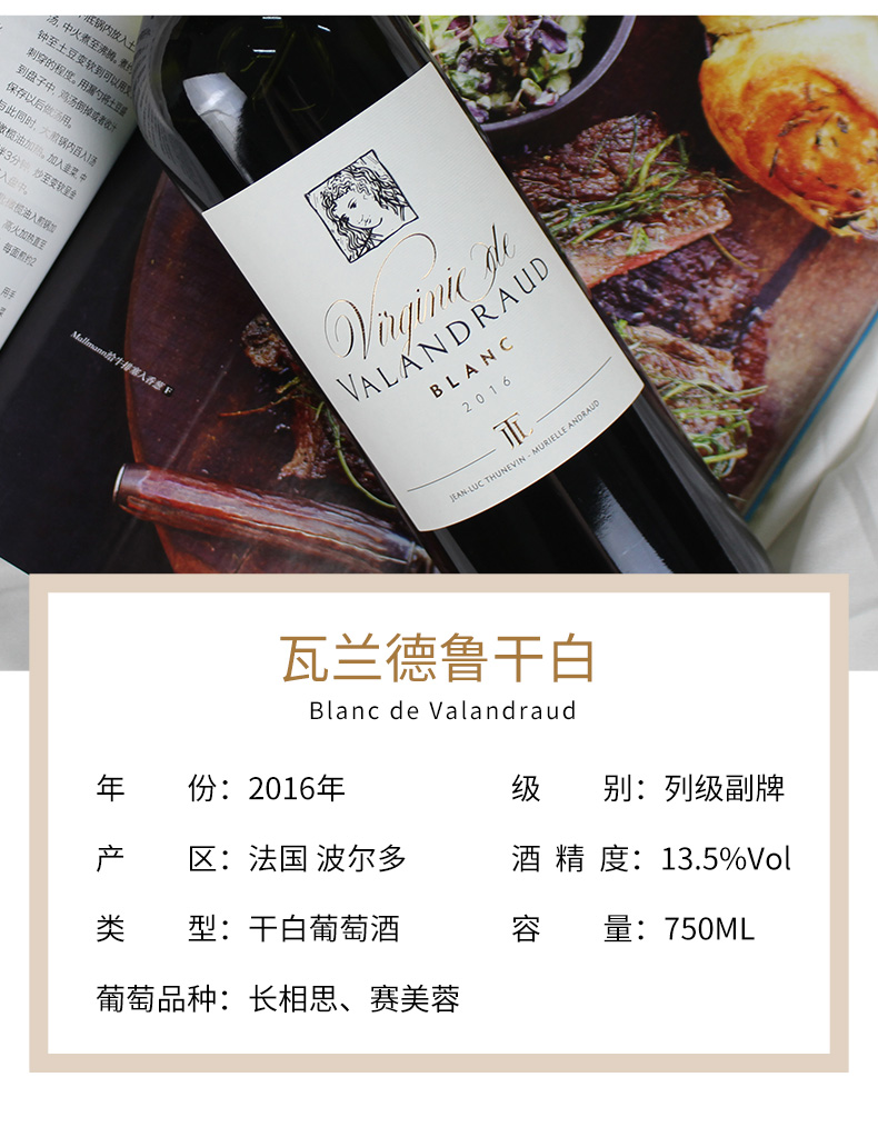 瓦兰德鲁干白 Virginie de Valandraud Blanc 2016年 750ml 回味悠长优雅清新 72小时发货