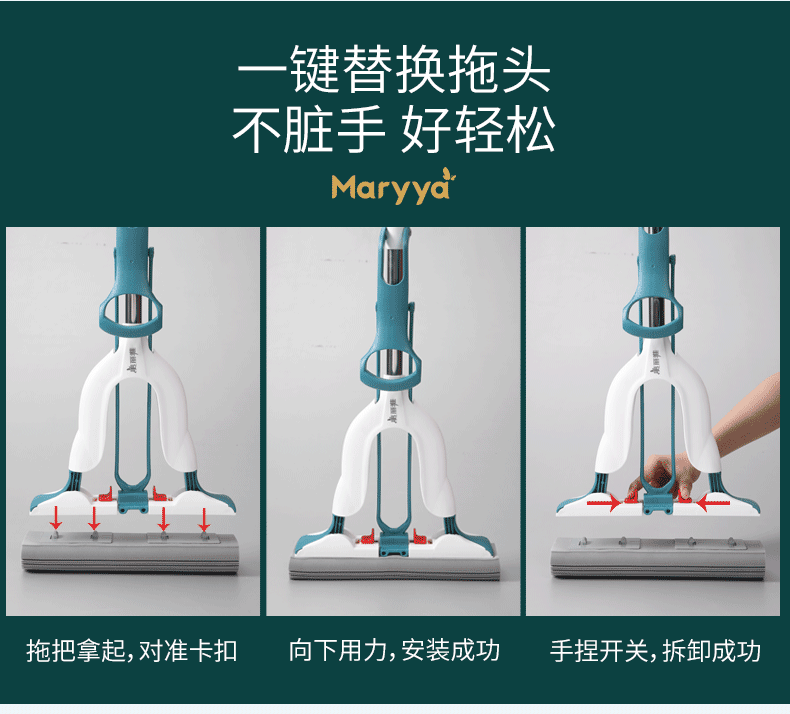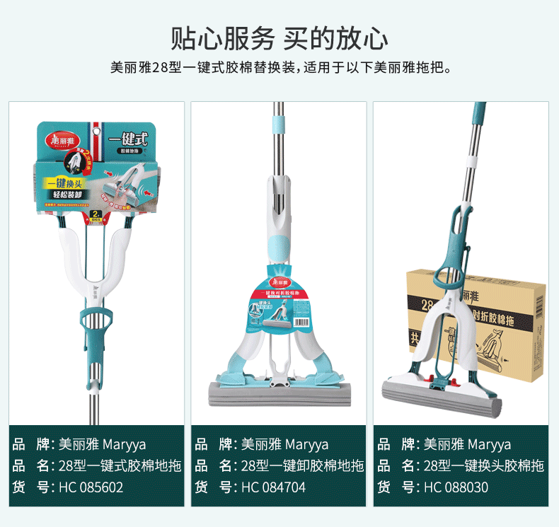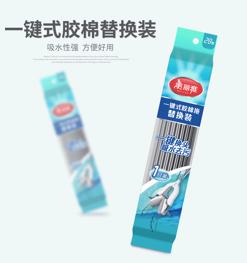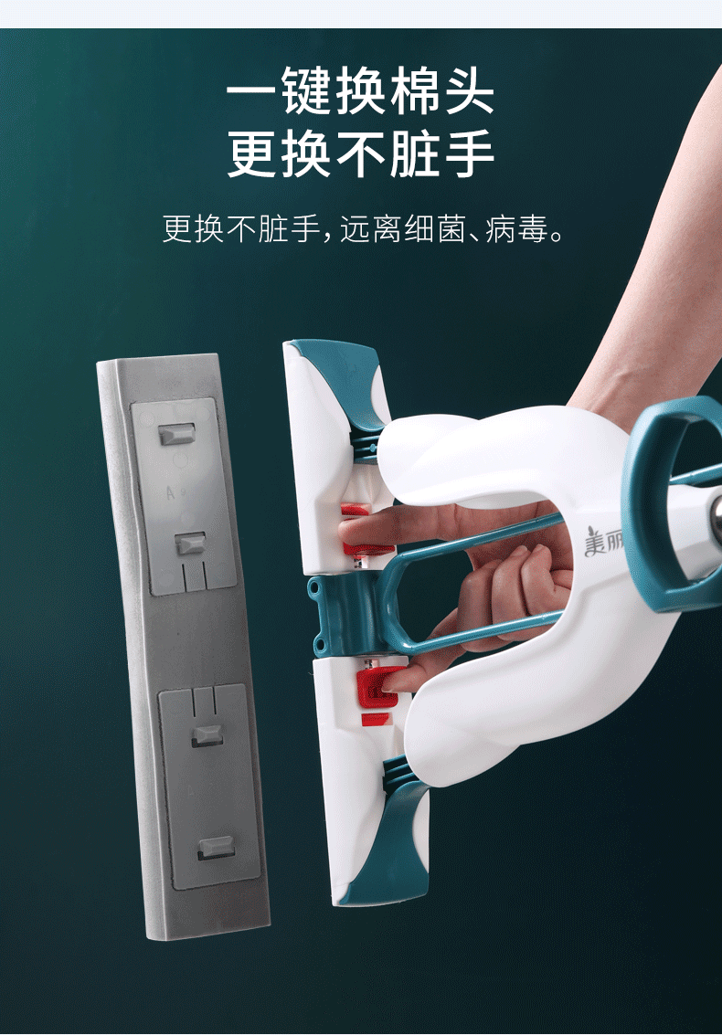 【一键式胶棉拖替换装】美丽雅胶棉拖备件家用吸水海绵头免手洗干湿两用