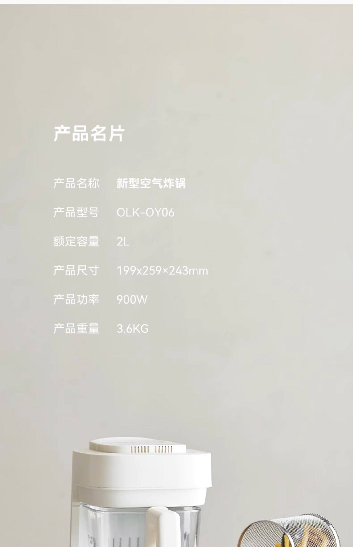 olayks立时 玻璃空气炸锅2L KQZG00601
