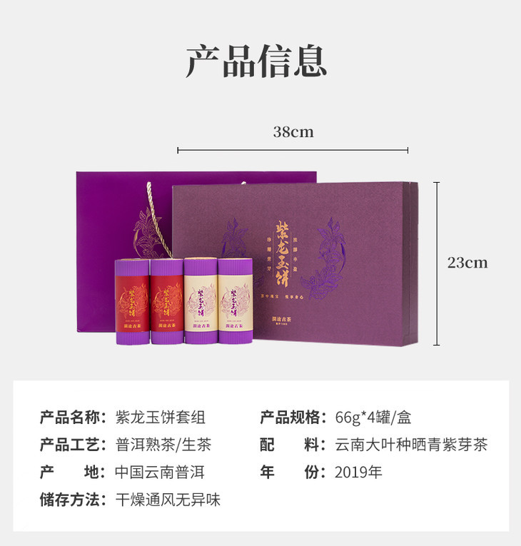 温馨提示:礼包类,不参与店铺买送满送优惠,紫龙玉饼新旧包装随机发。
