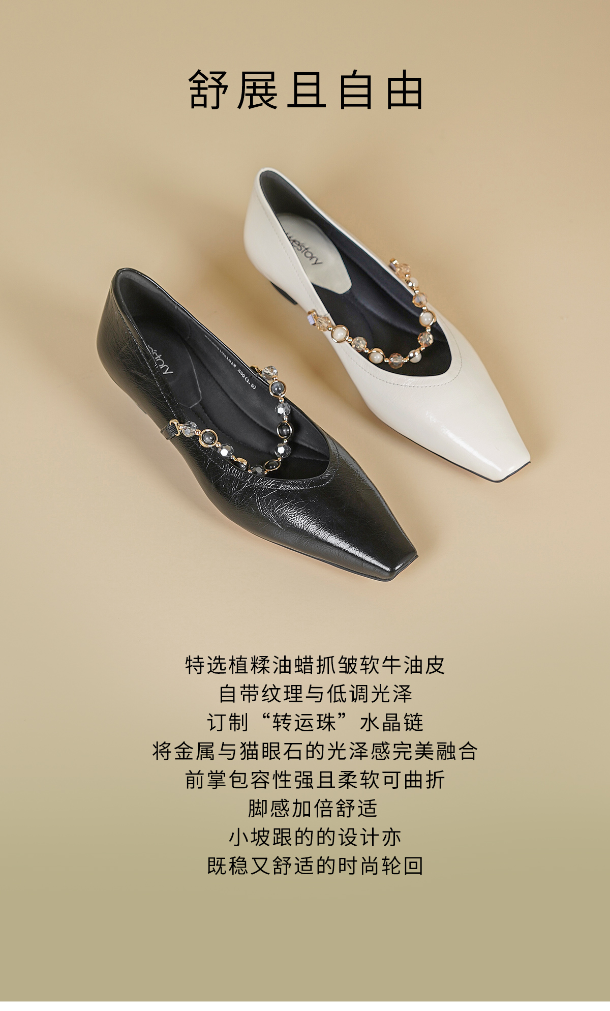 Westory2026年春季小方头坡跟牛皮玛丽珍单鞋通勤休闲百搭浅口鞋W26AE51021
