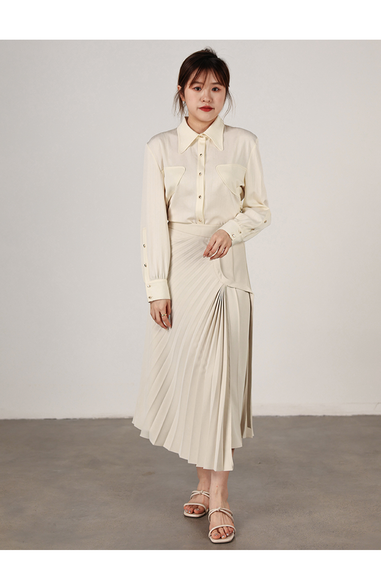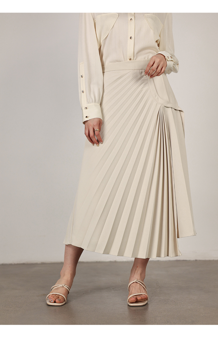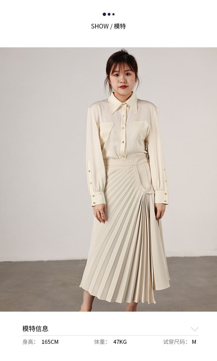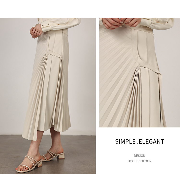 oldcolour春秋季商场同款不规则高腰气质百褶半身裙O32063276