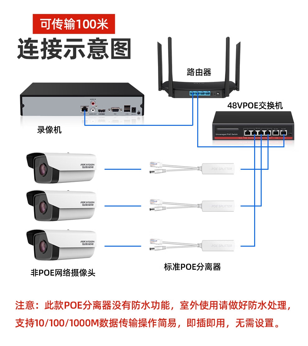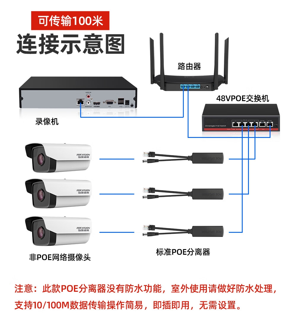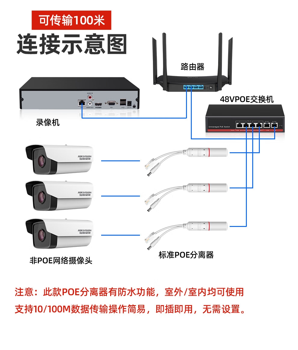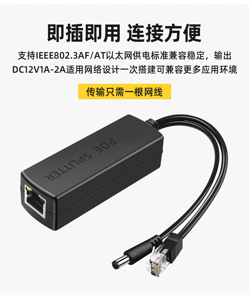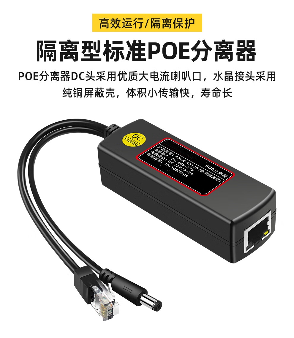 批发价@【POE分离器】 供电模块48V转12V5V室内外防水网络摄像头标准带隔离一分二隔离型网线支持大华海康摄像头