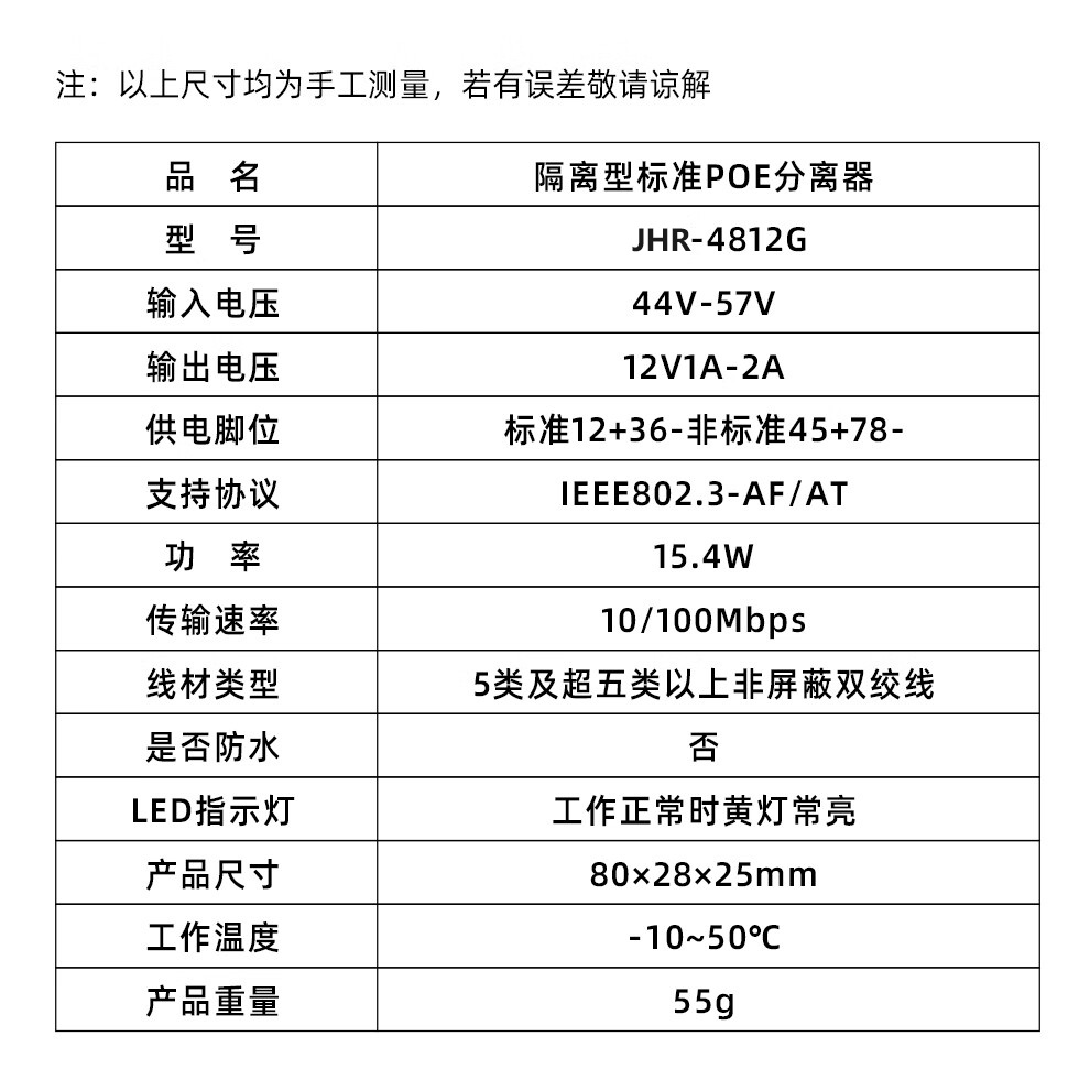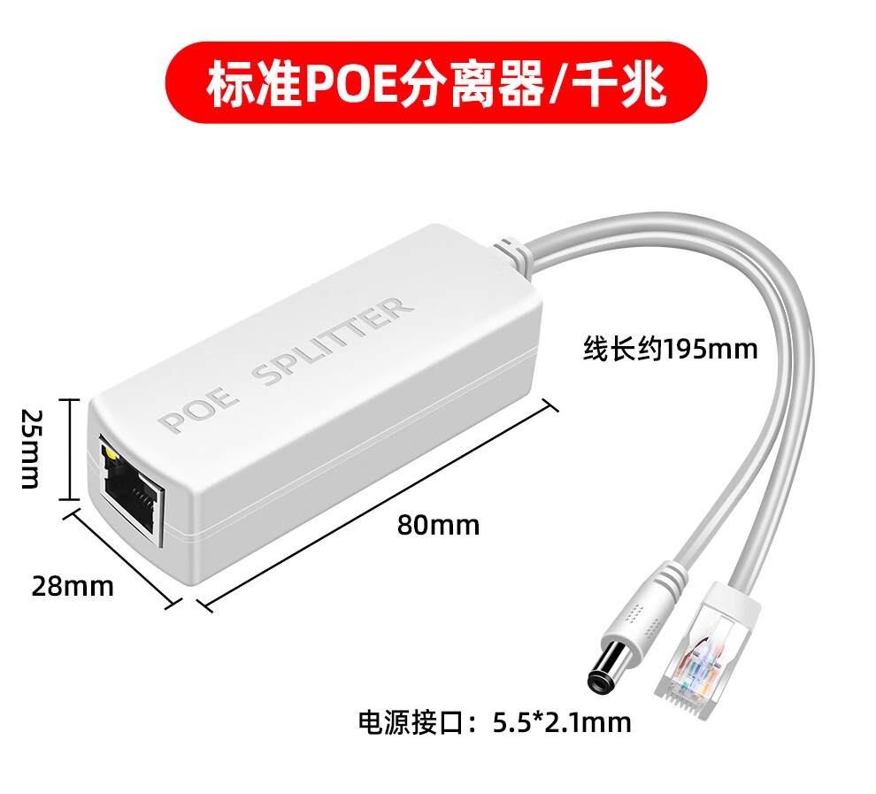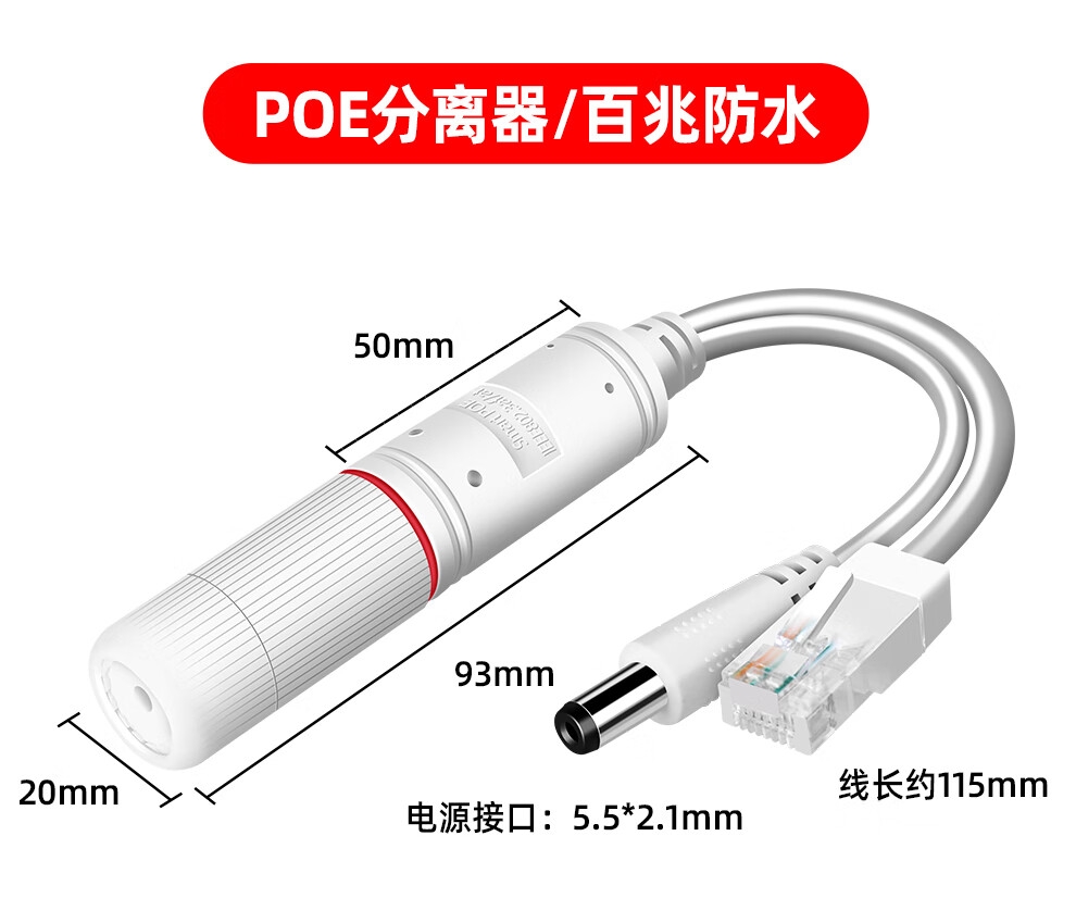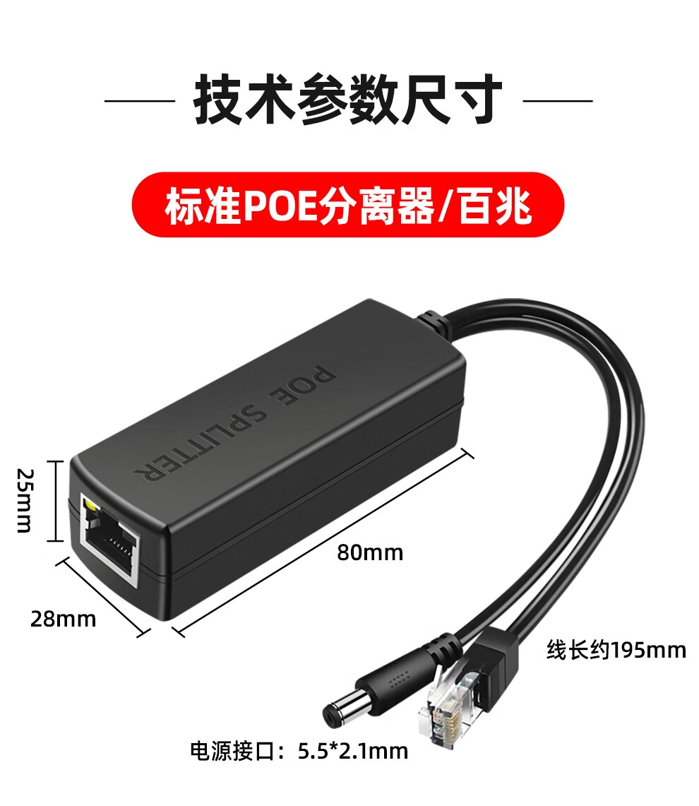 商品名称:标准POE分离器网络摄像头延长器48V转12V中继器室内室外防水监控供电模块 POE分离器