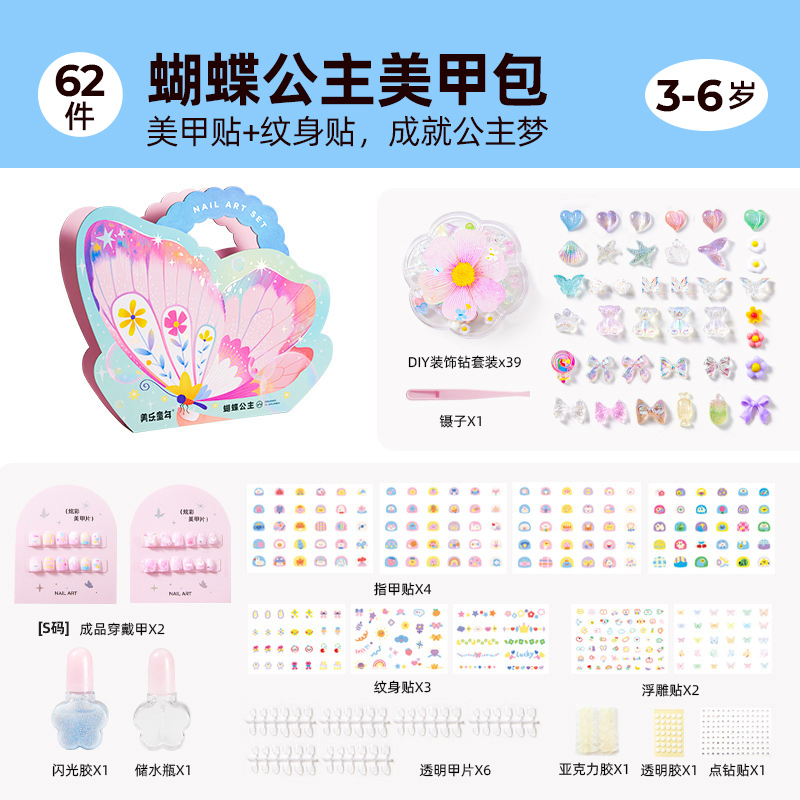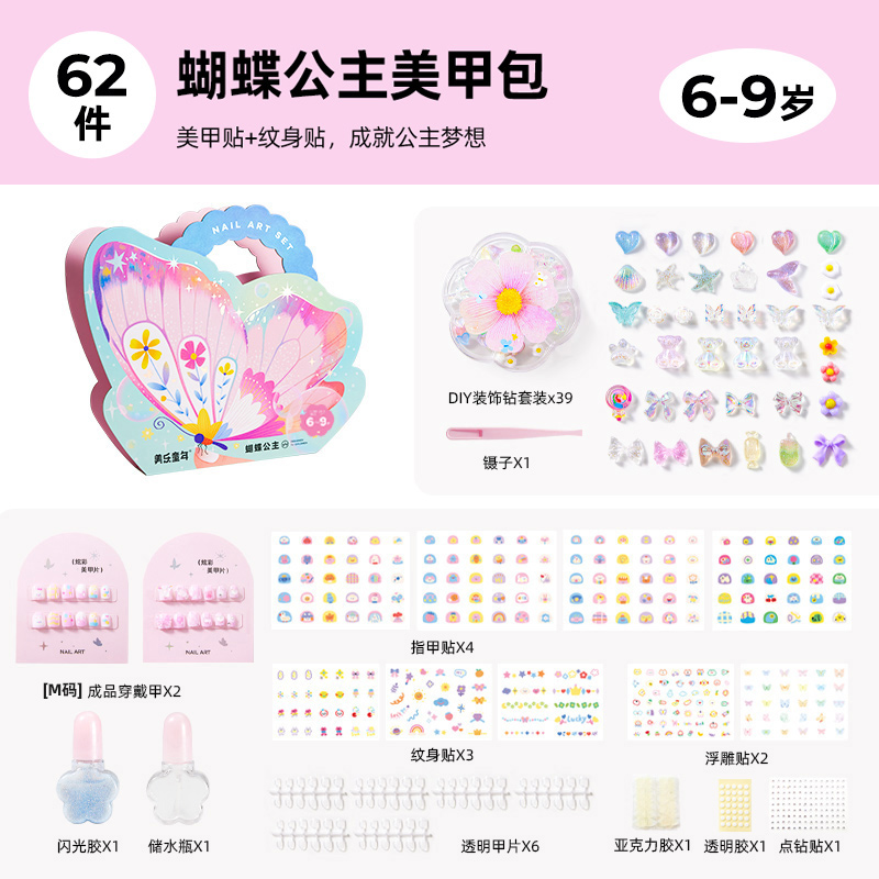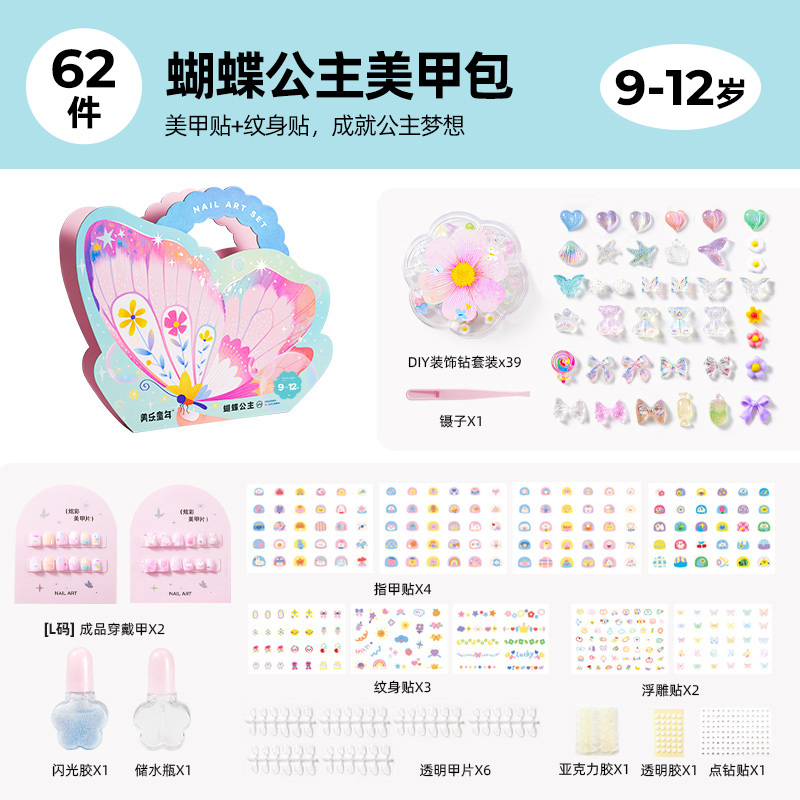 【云优选】美乐童年儿童公主美甲包套装全套穿戴甲女孩子玩具指甲贴生日礼物3-12岁