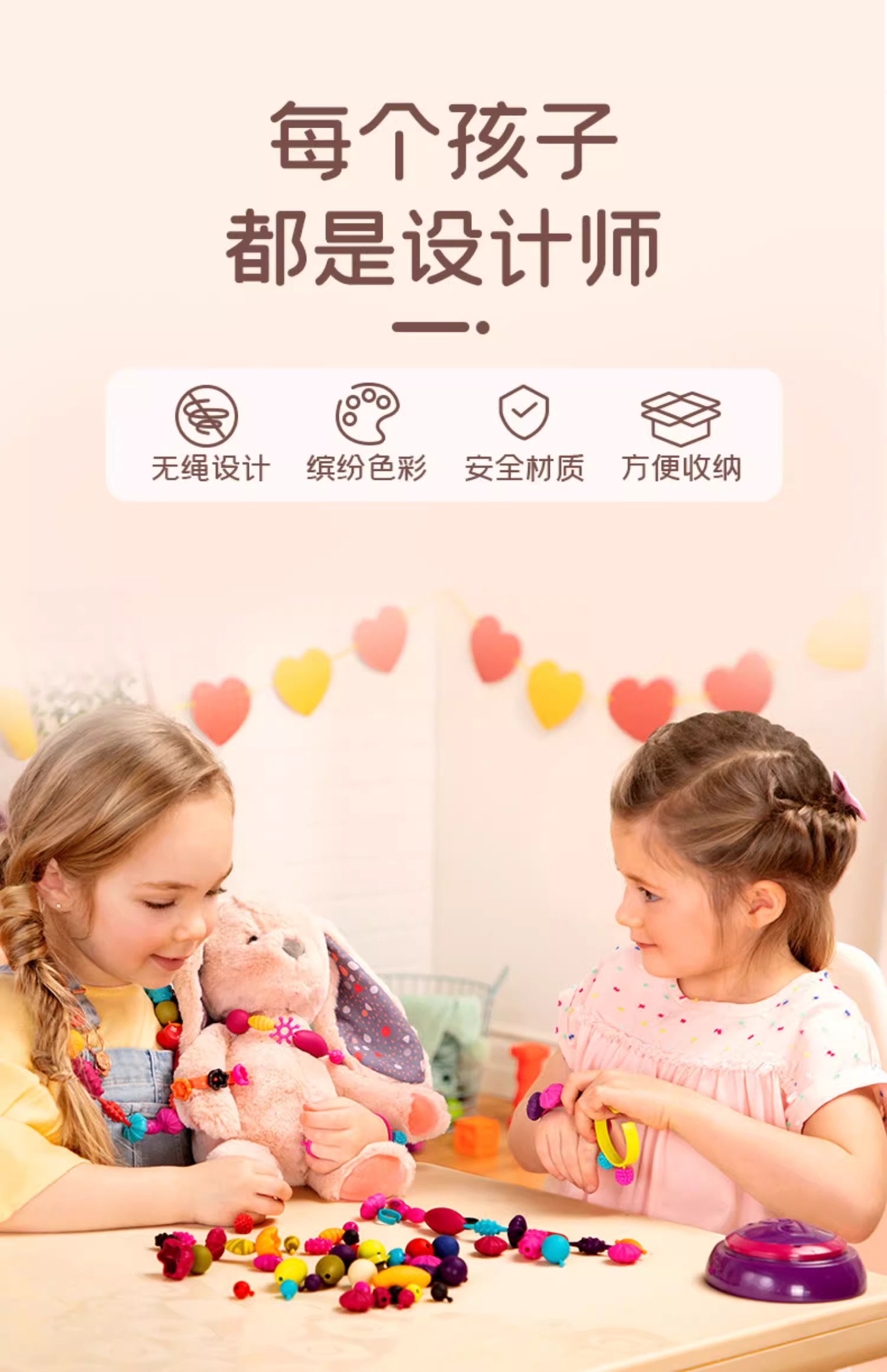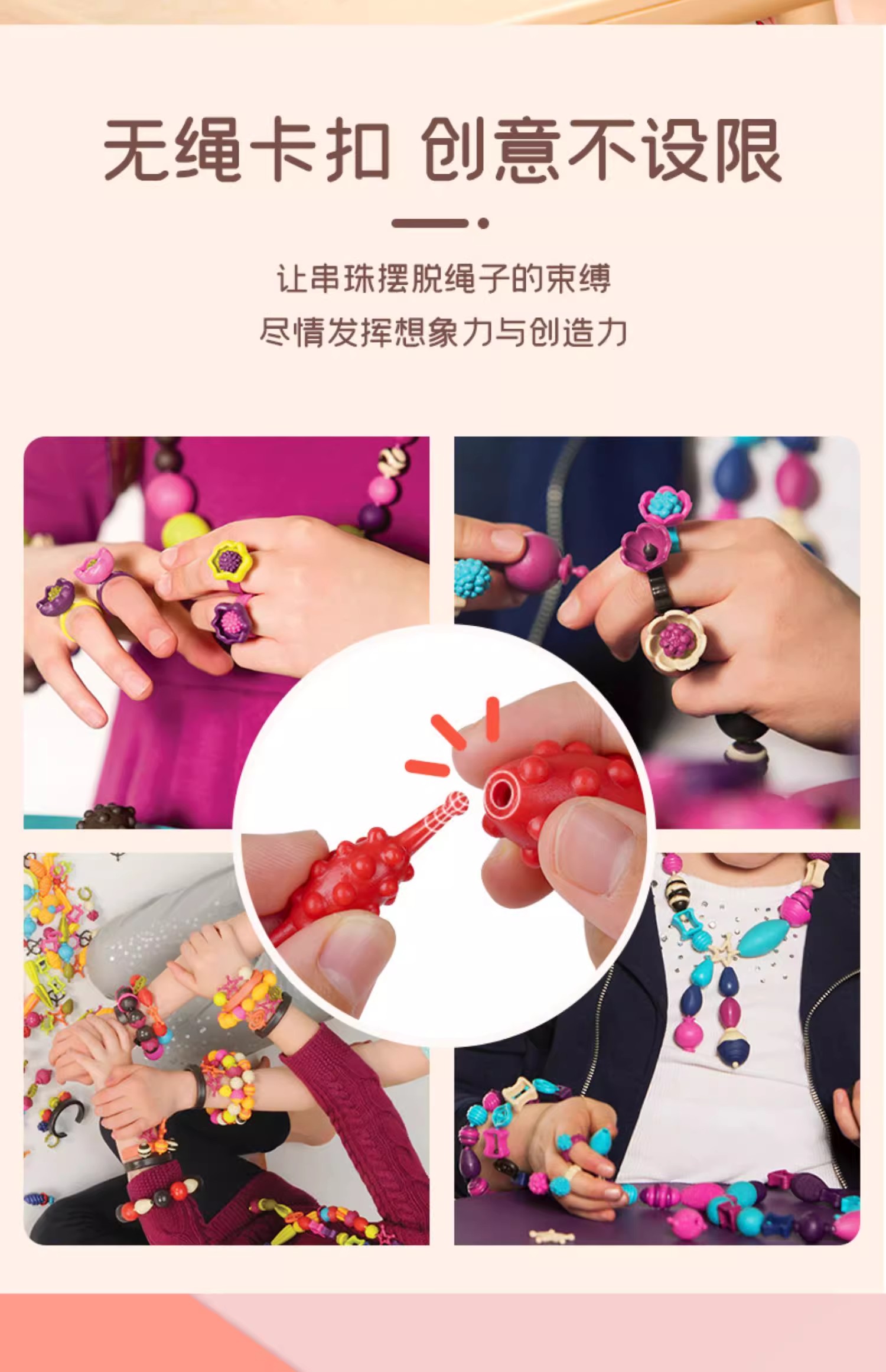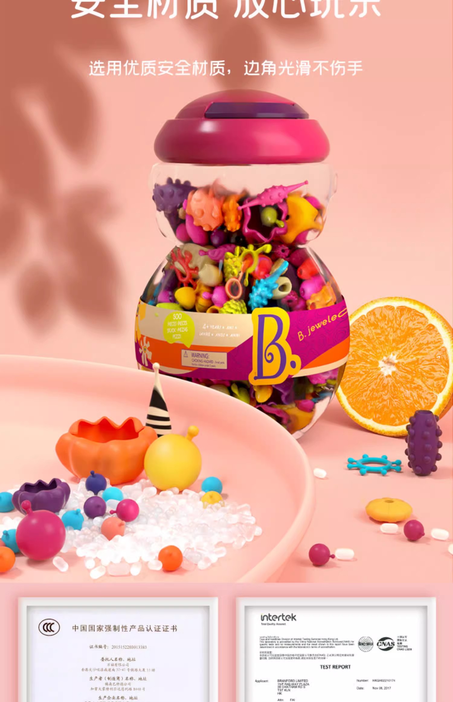 B-toys 珠子500粒 串珠波普珠珠儿童玩具无绳设计串珠子手工DIY