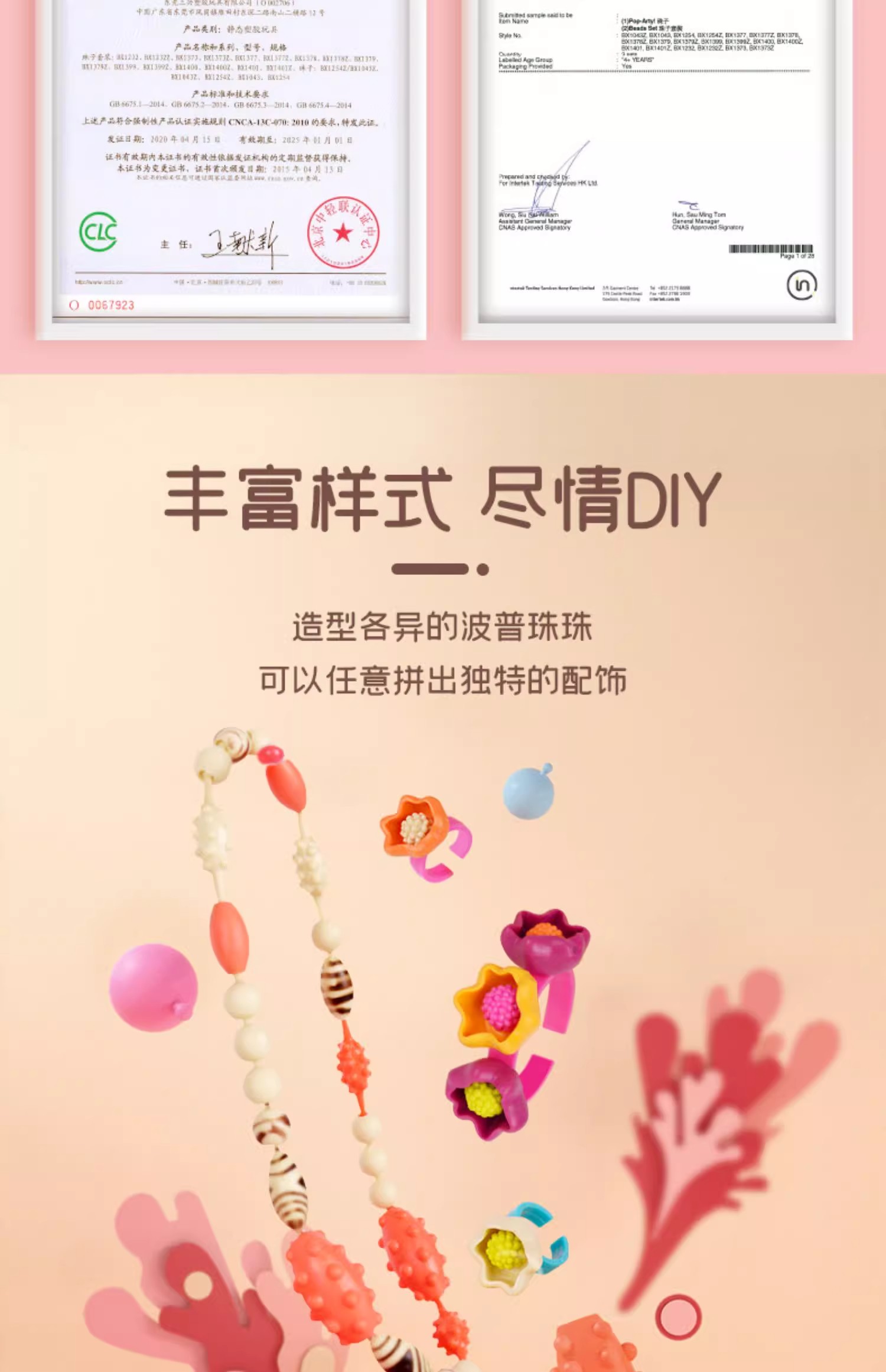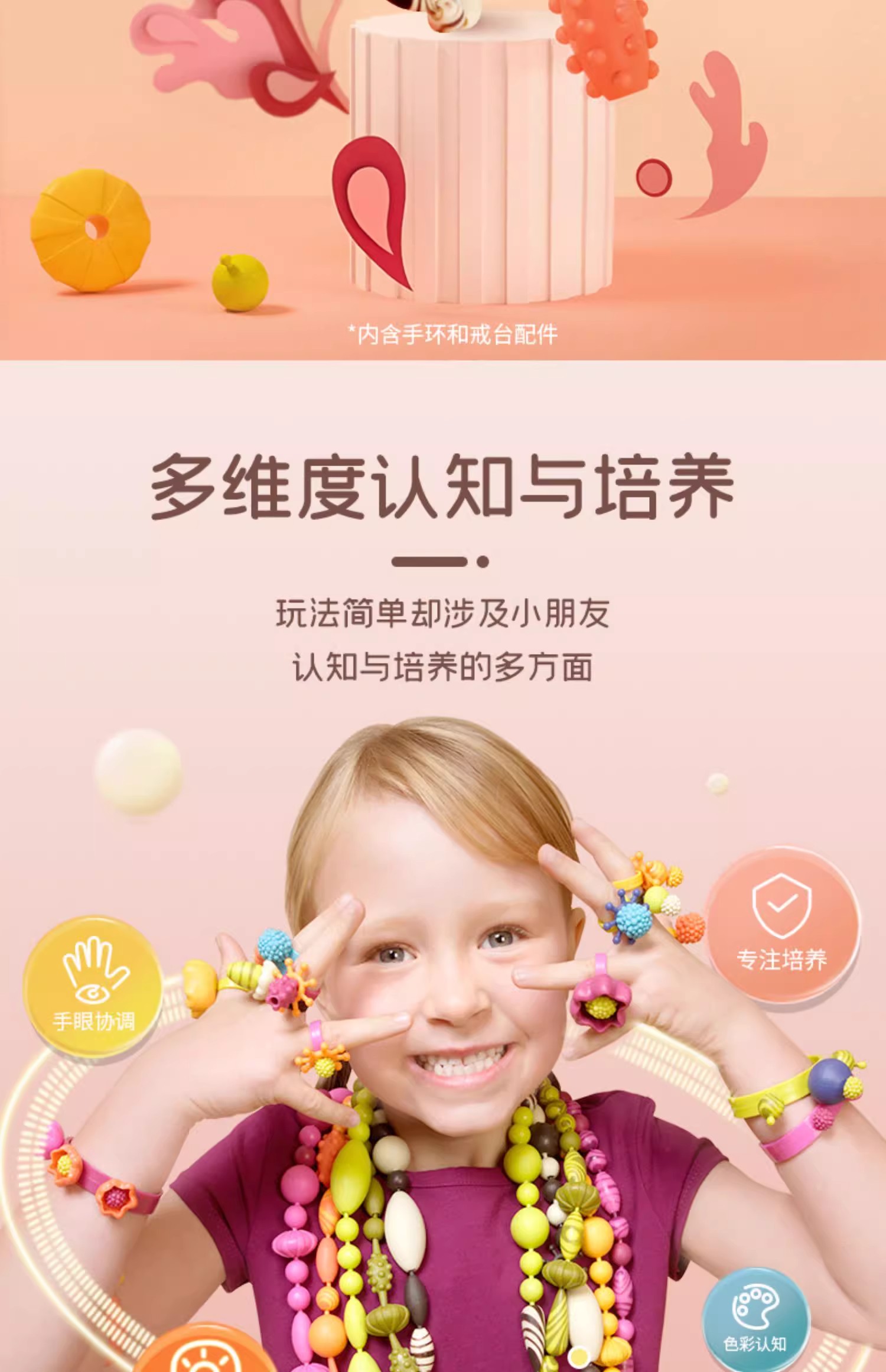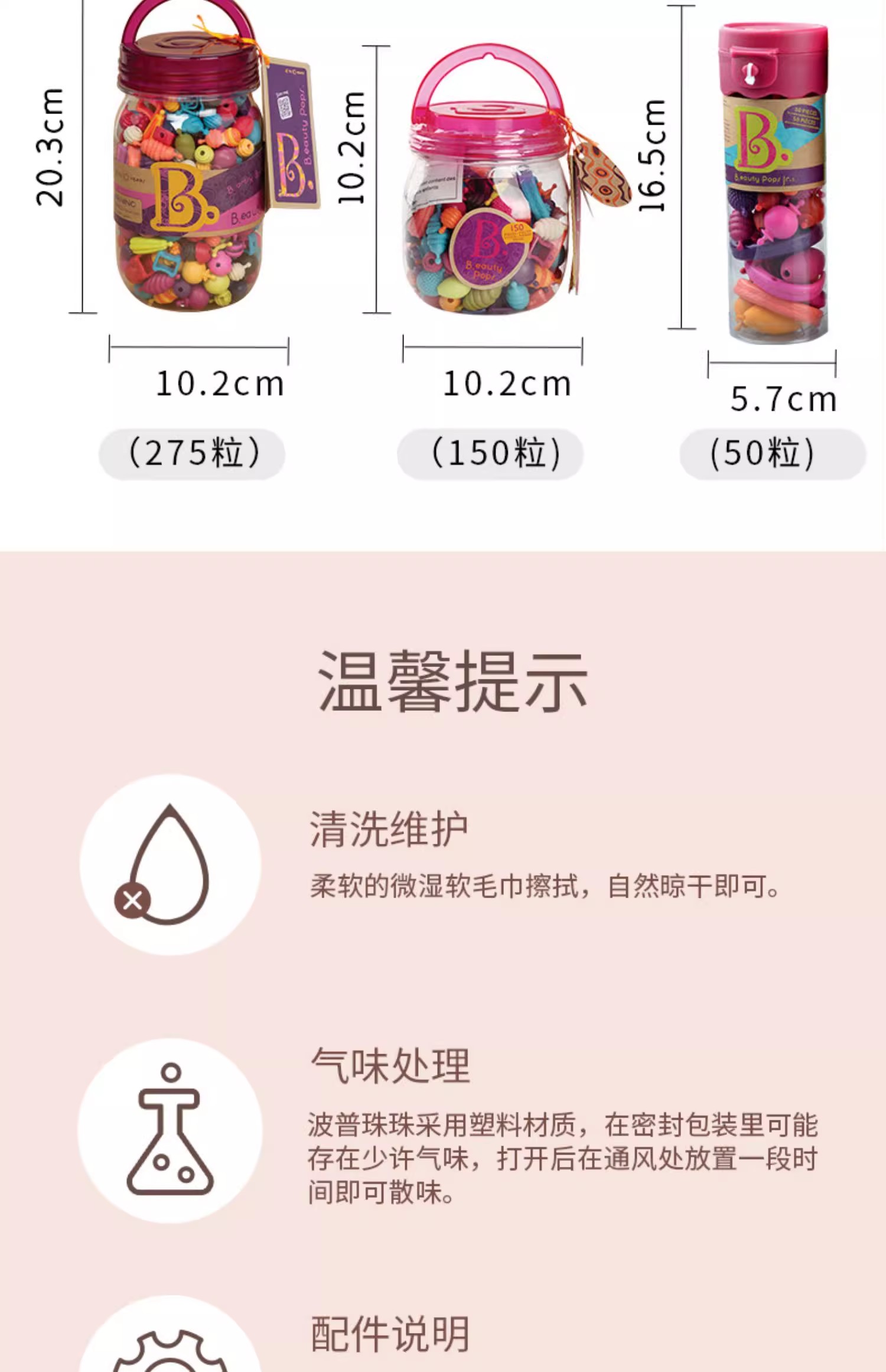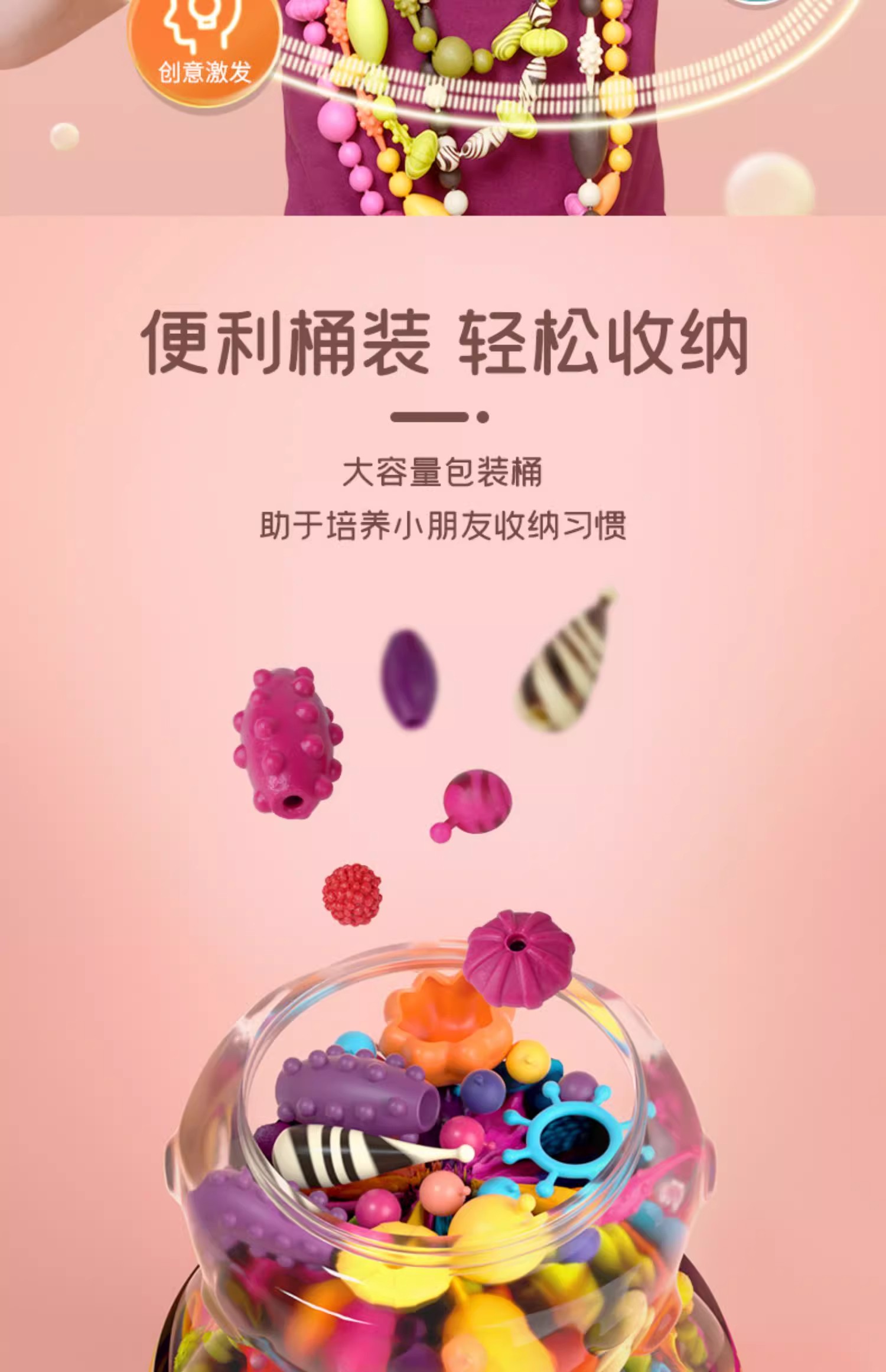 B-toys 珠子500粒 串珠波普珠珠儿童玩具无绳设计串珠子手工DIY