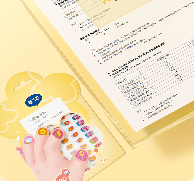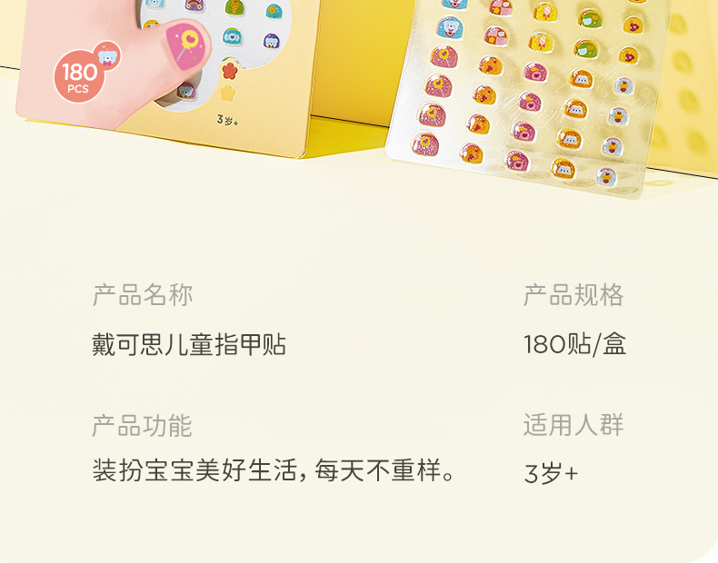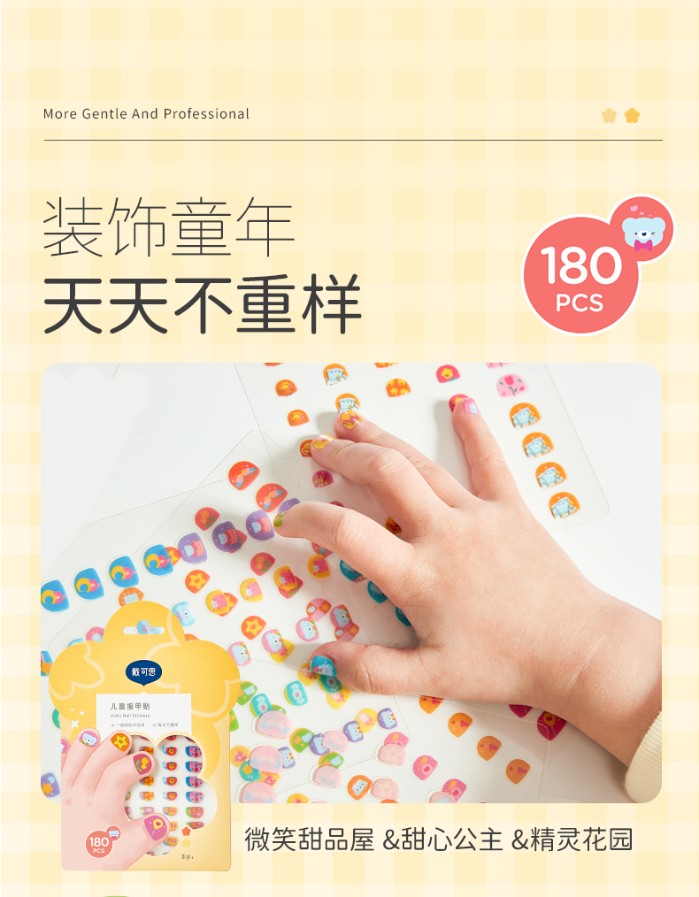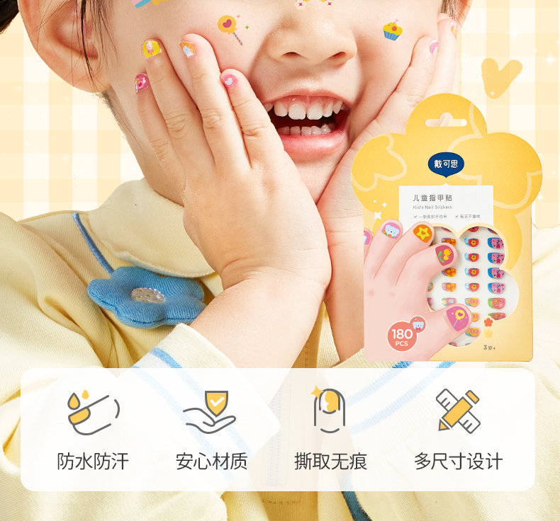 戴可思儿童指甲贴安全防水防汗易撕无痕3岁+宝宝女童美甲贴♥