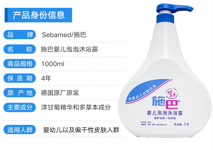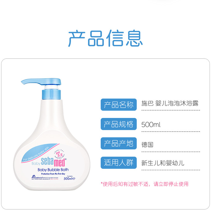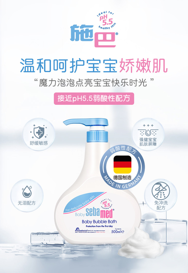 德国原装 sebamed/施巴 婴儿泡泡沐浴露200ml/500ml/1000ml