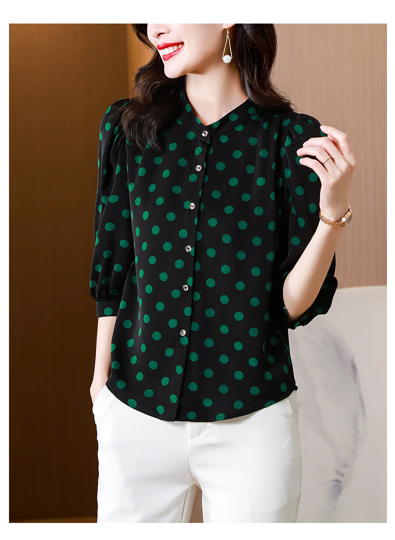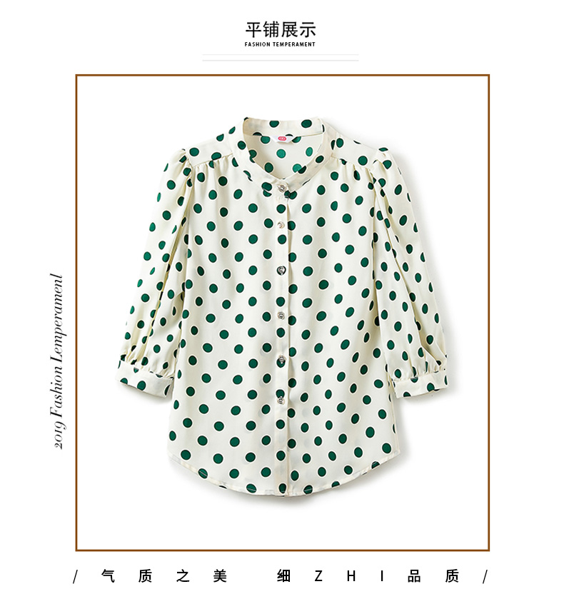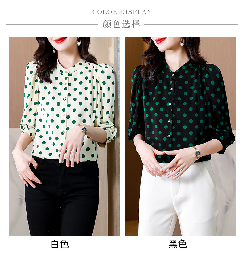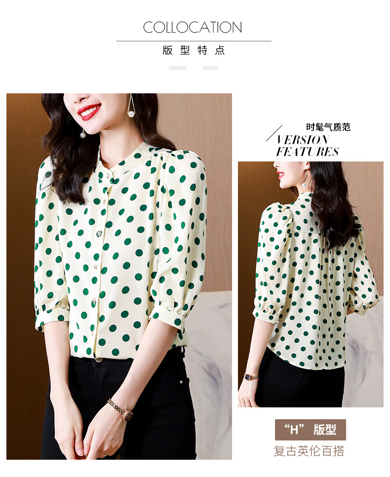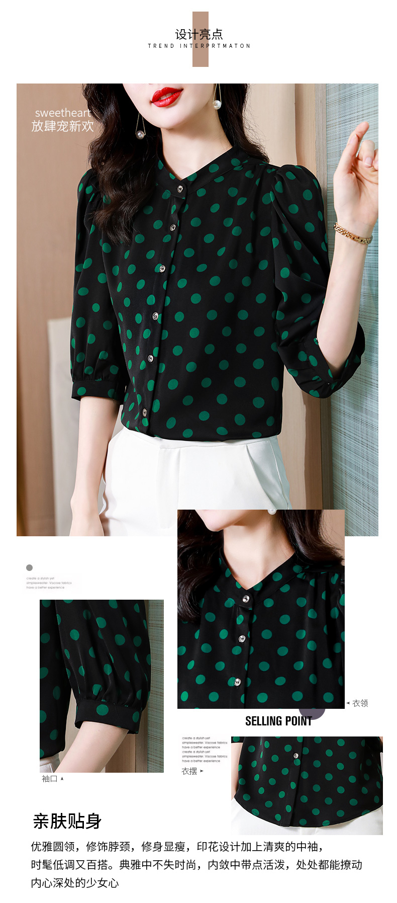 波点印花雪纺衬衫女夏新款宽松大码七分袖上衣洋气漂亮泡泡袖小衫 TR-HGH6925