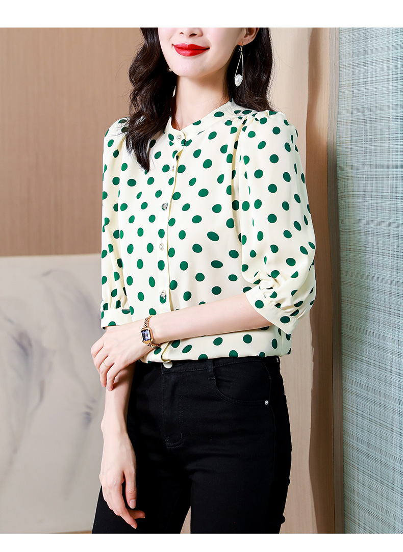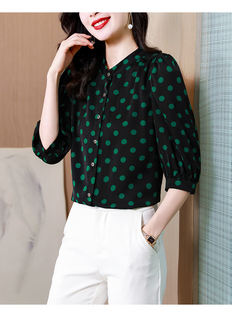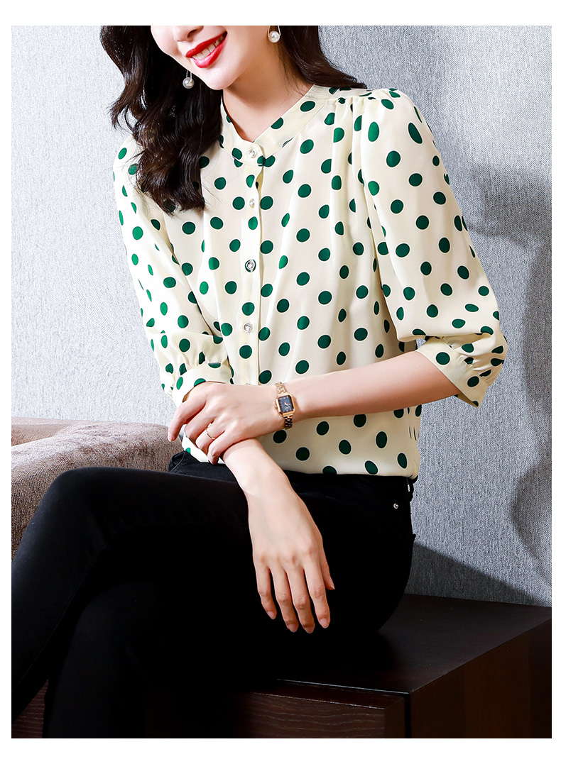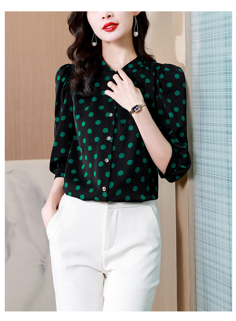 波点印花雪纺衬衫女夏新款宽松大码七分袖上衣洋气漂亮泡泡袖小衫 TR-HGH6925