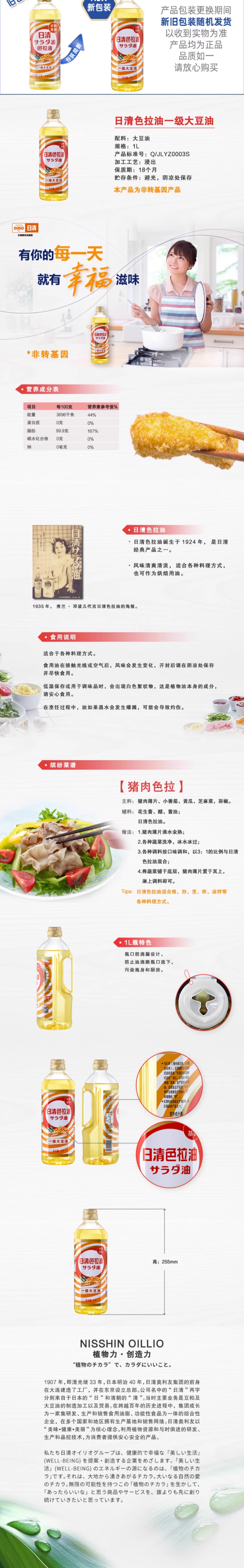 日清色拉油一级大豆油1L