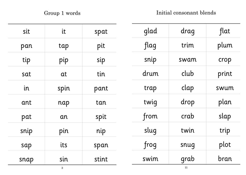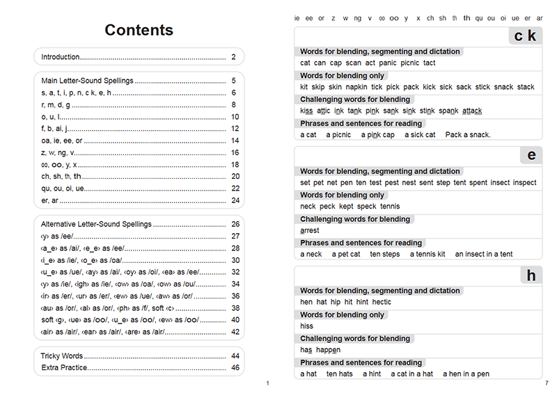 • 按发音规律分类编排,适合进行混合拼读与音素定位双重训练。