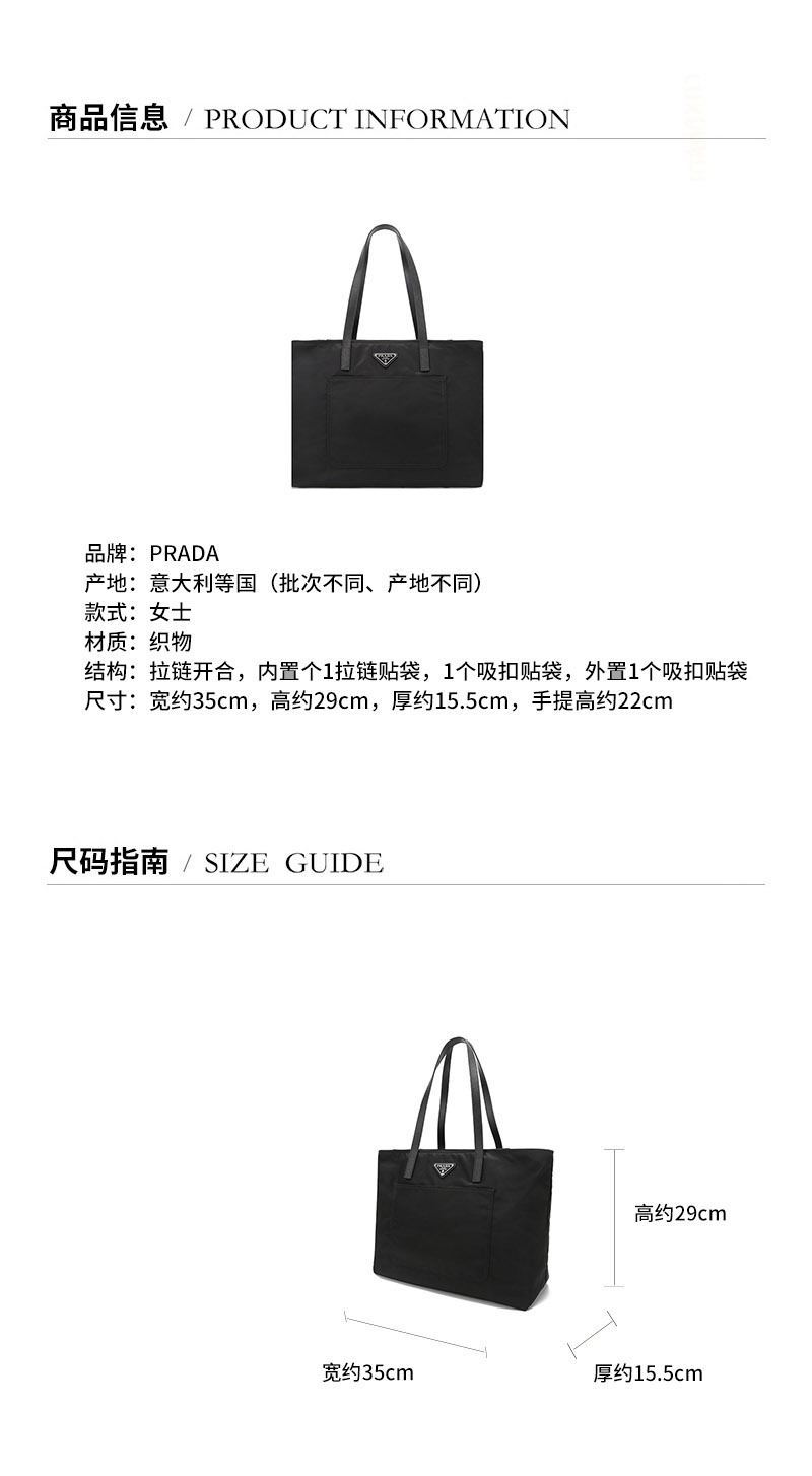 【国内现货】PRADA/普拉达 2021款 女士织物手提单肩包托特包 1BG052 R064