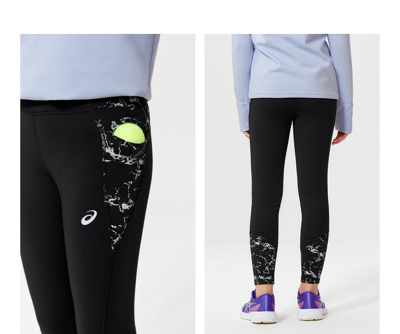ASICS/亚瑟士童装2023年秋冬新款女儿童加绒保暖运动针织打底裤