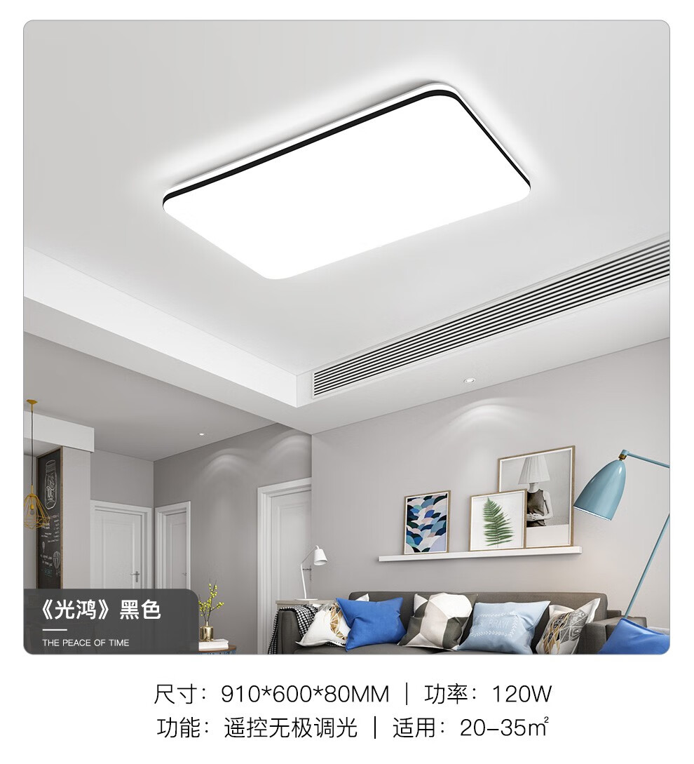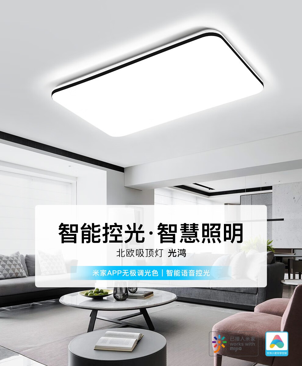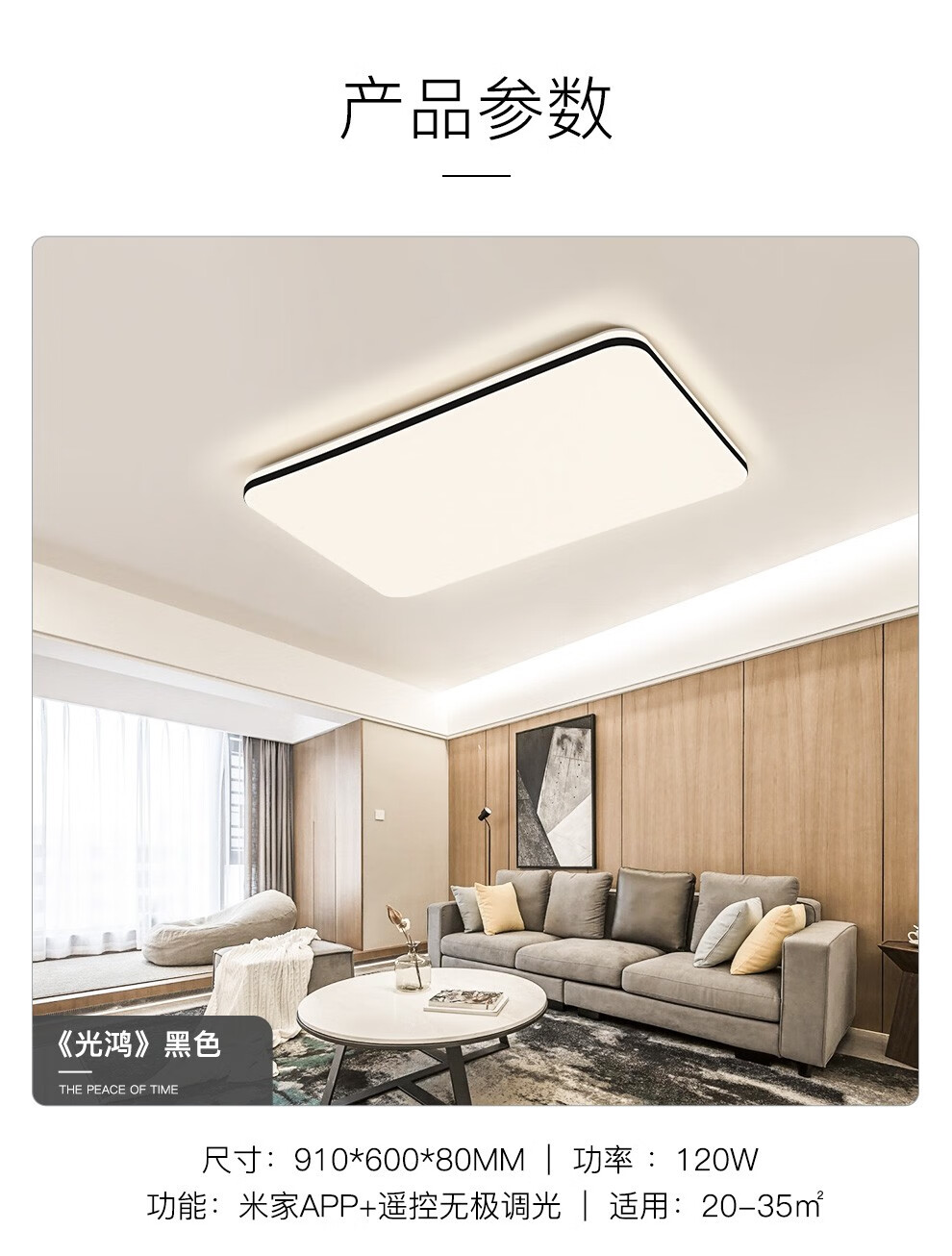 雷士(NVC) LED吸顶灯 现代简约智能客厅灯 时尚百搭卧室灯餐厅全屋灯具套餐 黑色【四室一厅-5灯】智控客厅