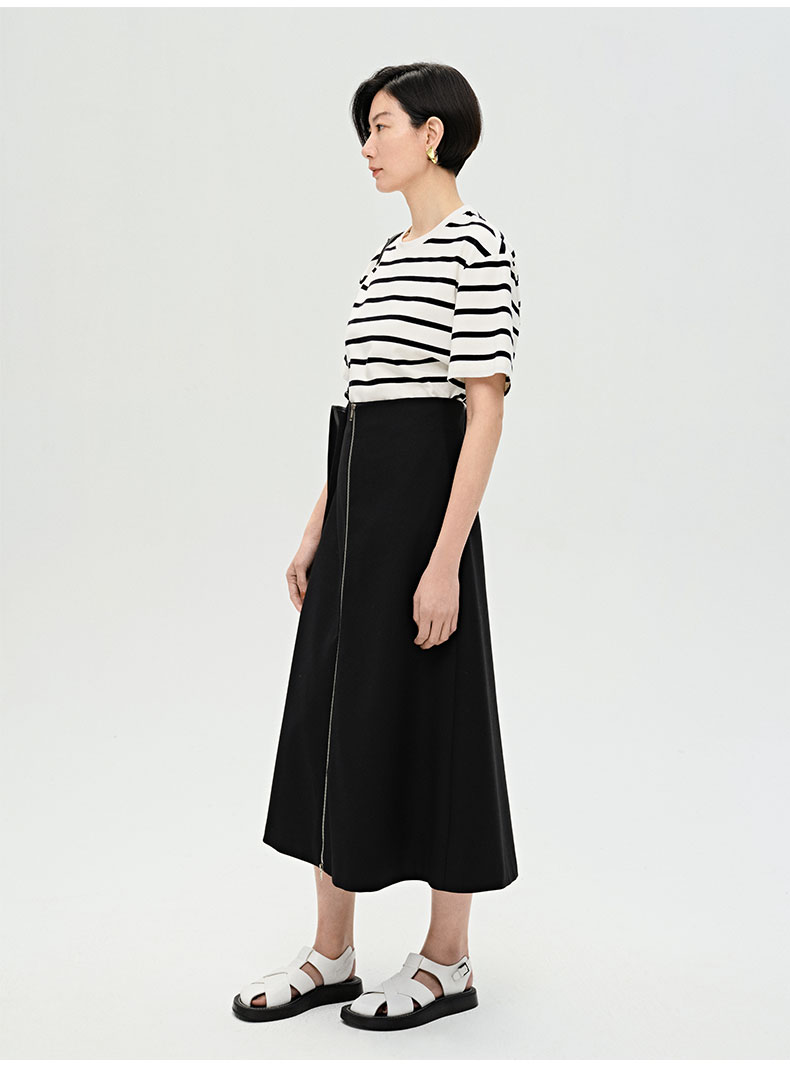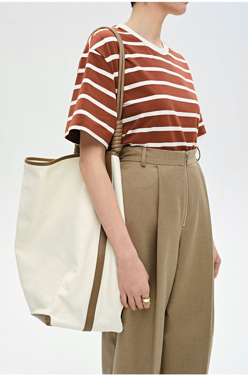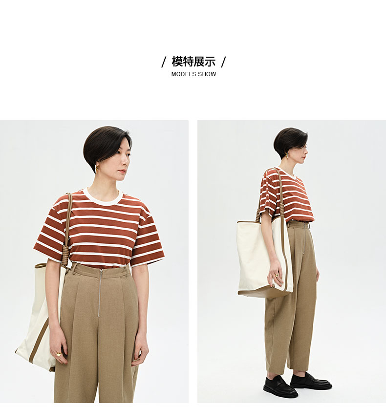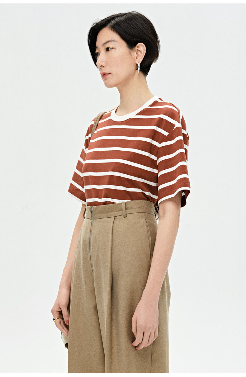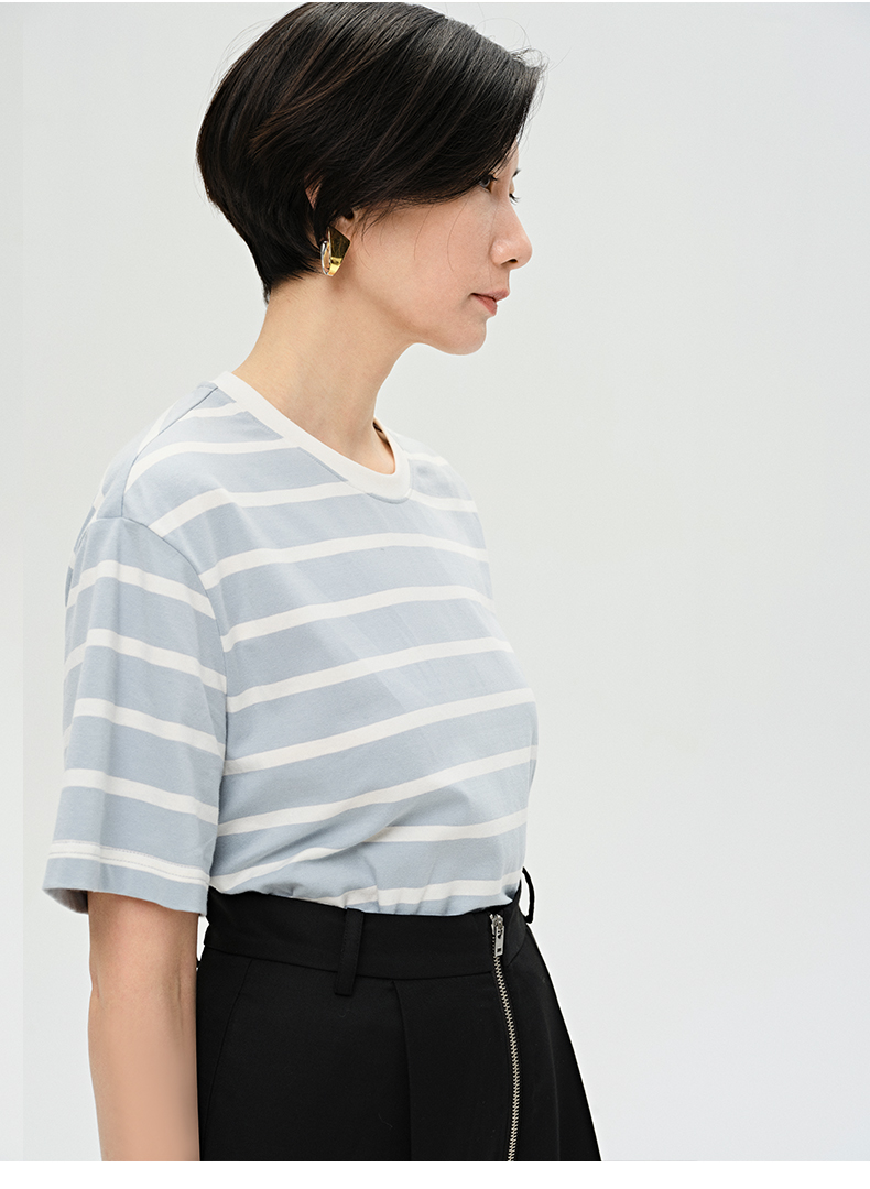 HIDEMI 条纹高密棉圆领亲肤百搭廓形T恤 黑白条纹/蓝白条纹/棕白条纹