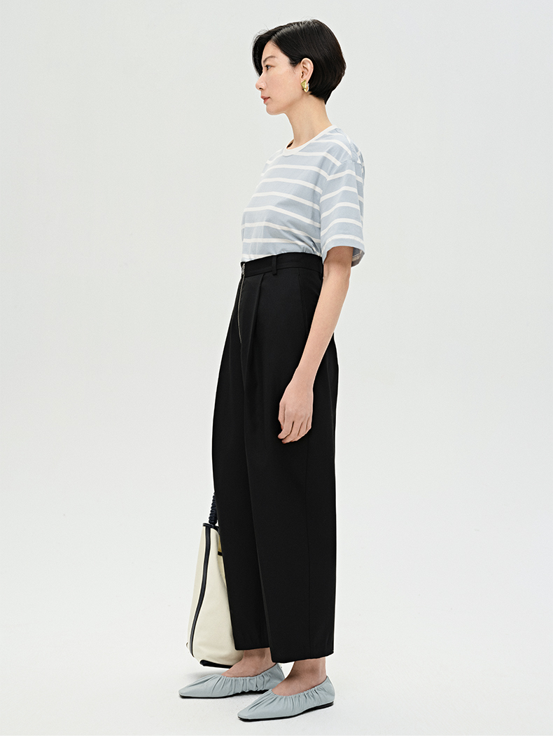 HIDEMI 柔顺感后开衩长裤 白色/炼乳黄/黑色