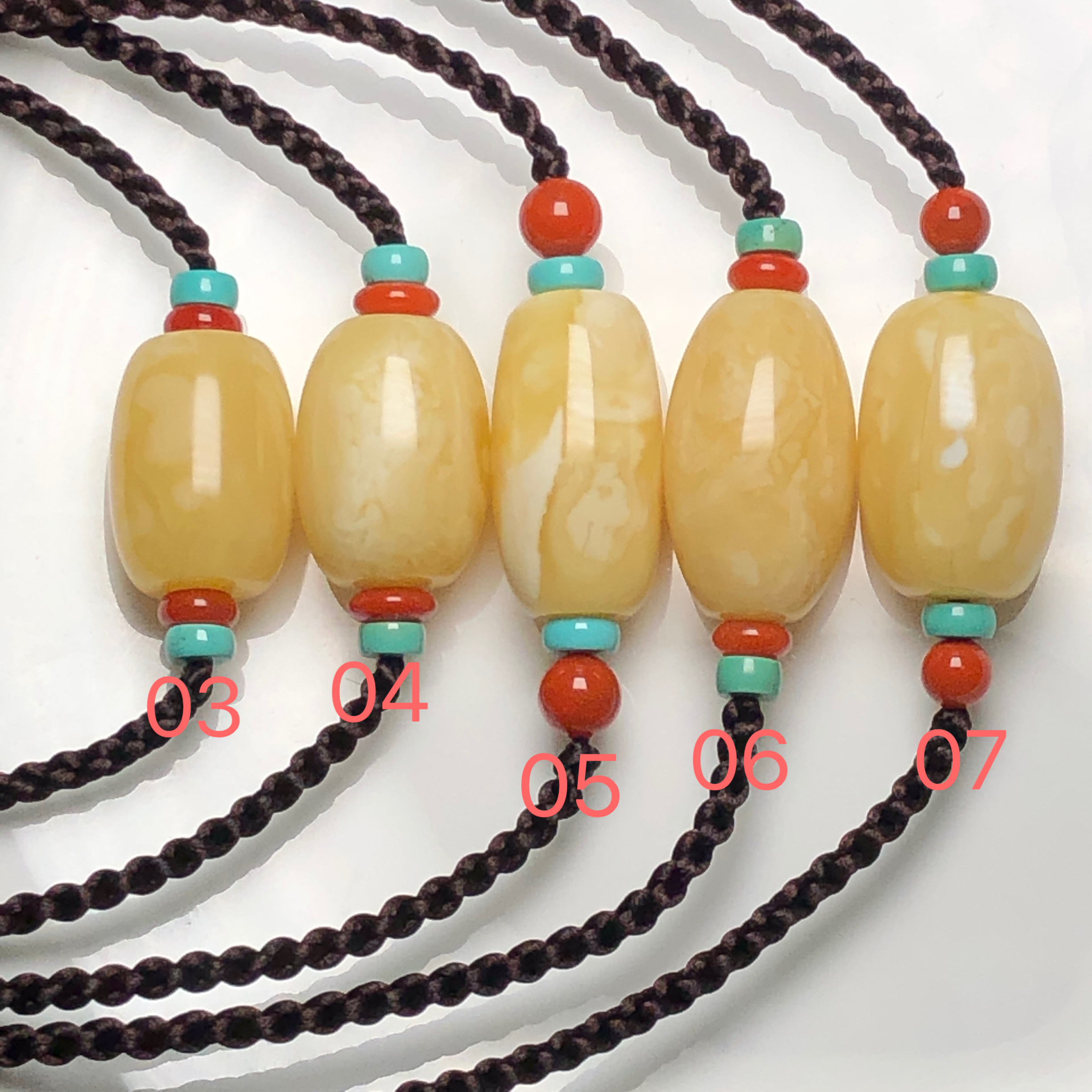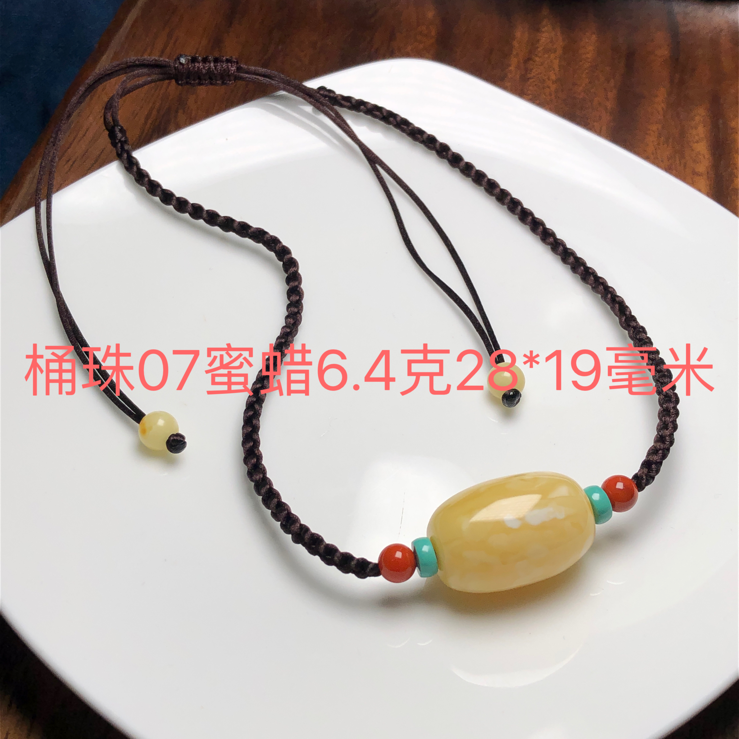 精品俄料蜜蜡桶珠配松石南红创意锁骨坠 饰品美物
