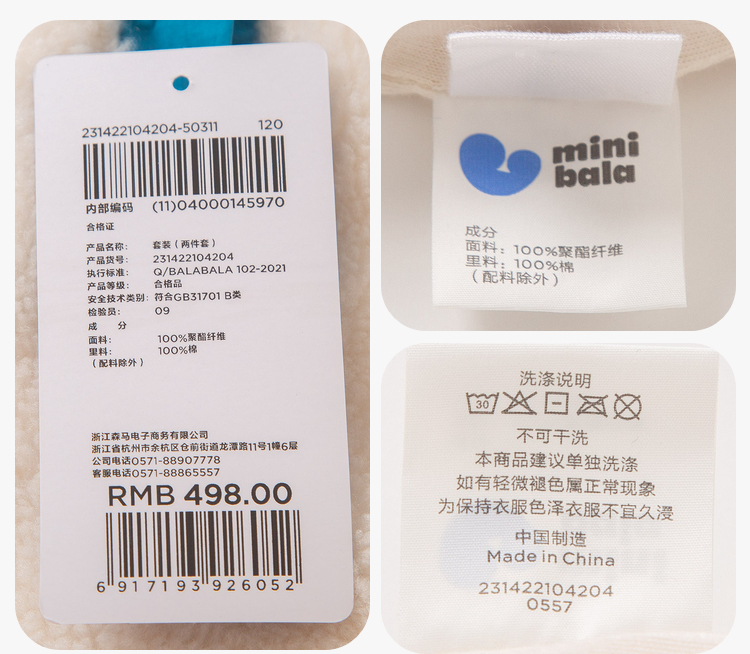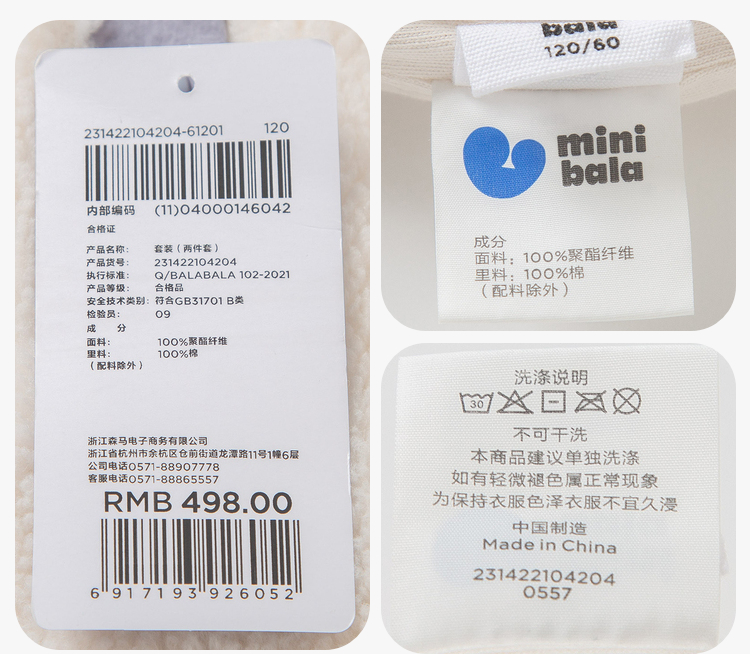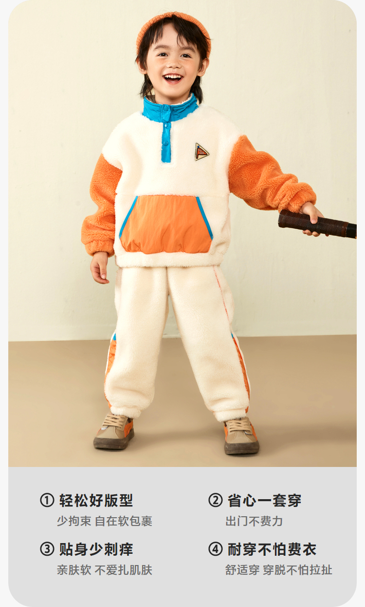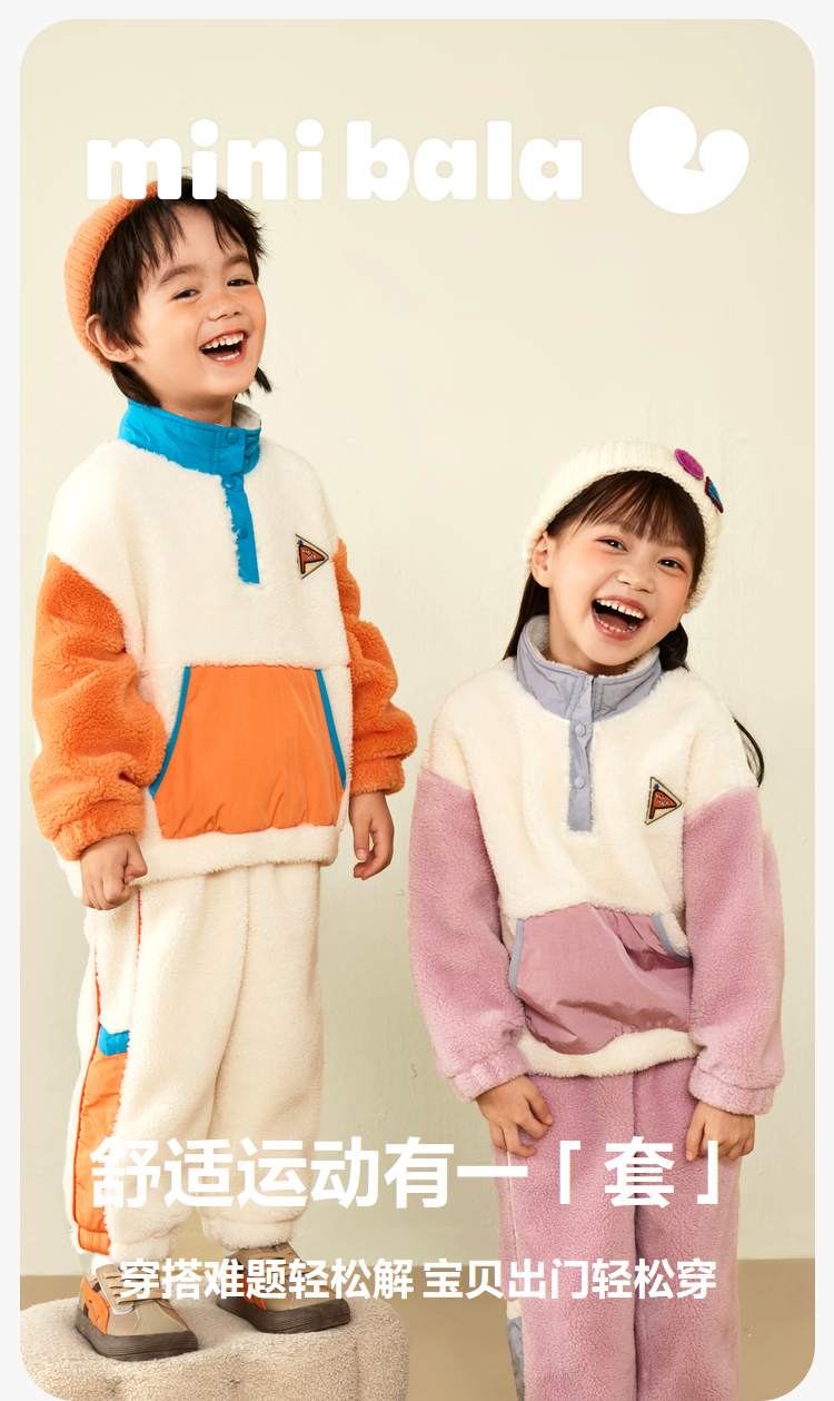【2件套】迷你巴拉男童女童长袖套装宝宝宽松羊羔毛卫衣长裤
