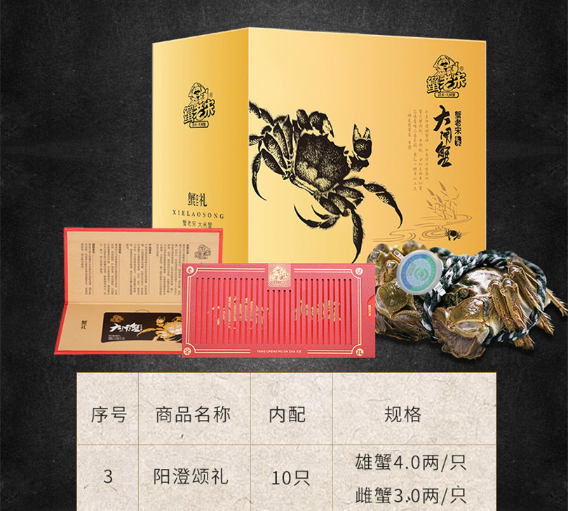 蟹老宋阳澄贡礼大闸蟹券998型 10只(雄蟹5.0两/只 雌蟹3.5两/只)【包邮直发】(ZB)