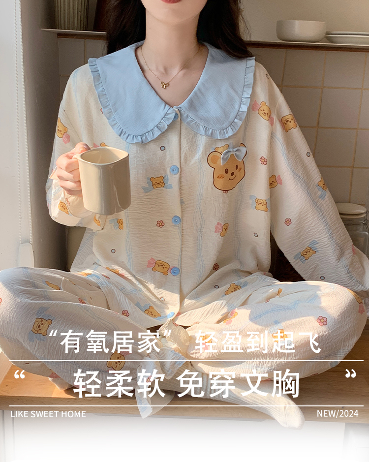 【GZ】无忧购可爱卡通云朵棉开衫家居服套装带胸垫 商品图14