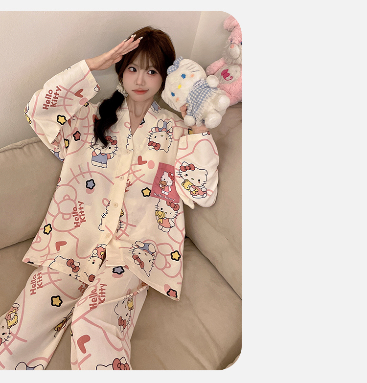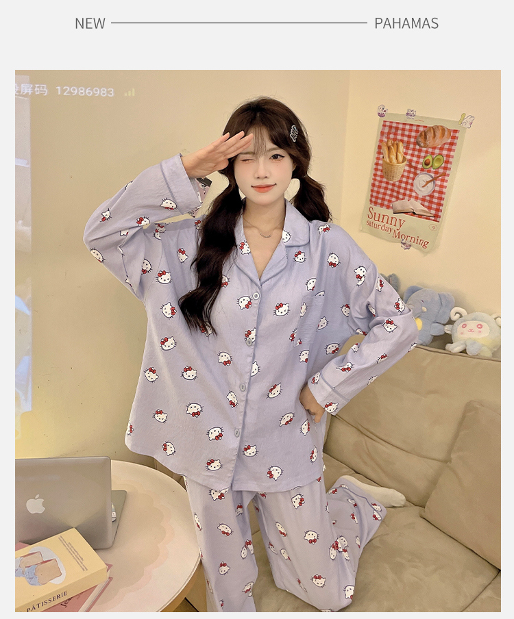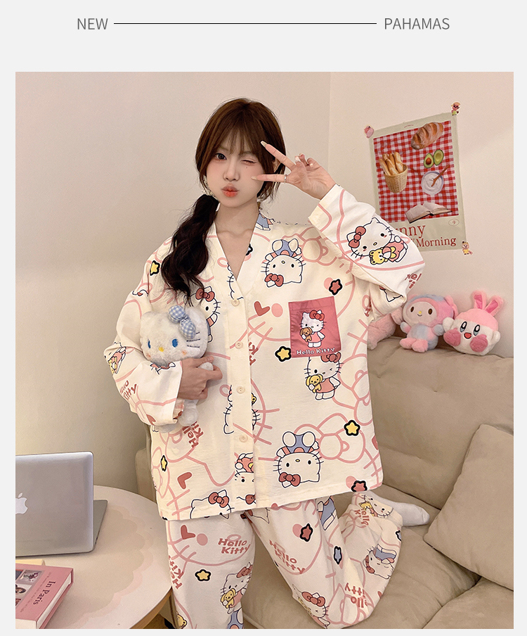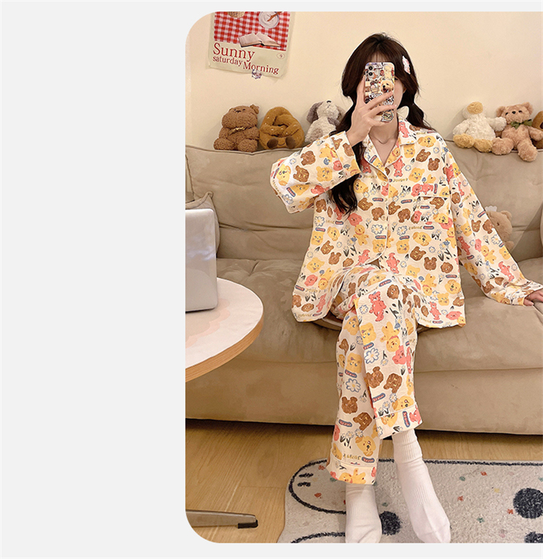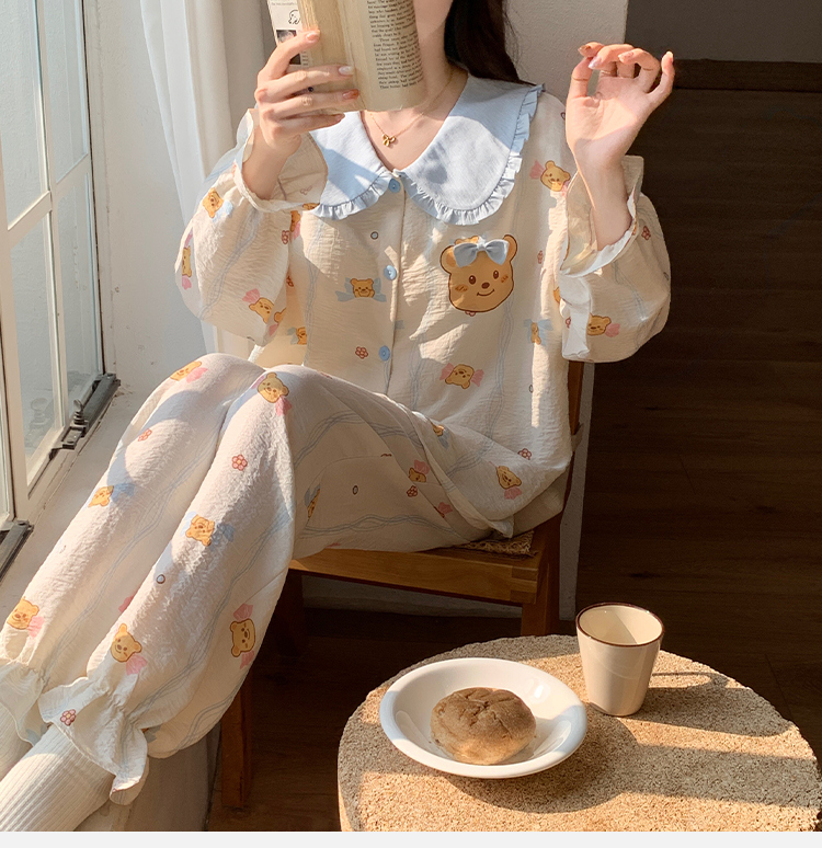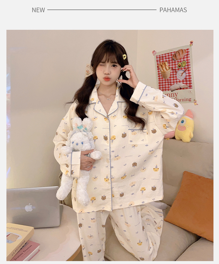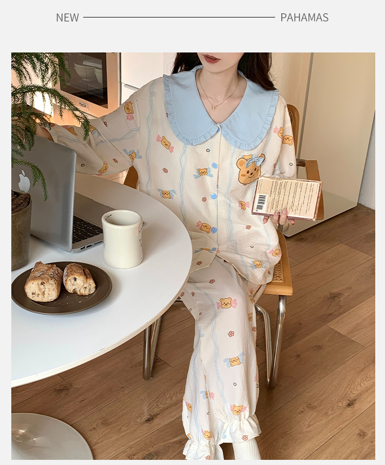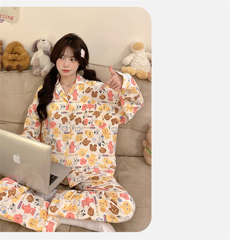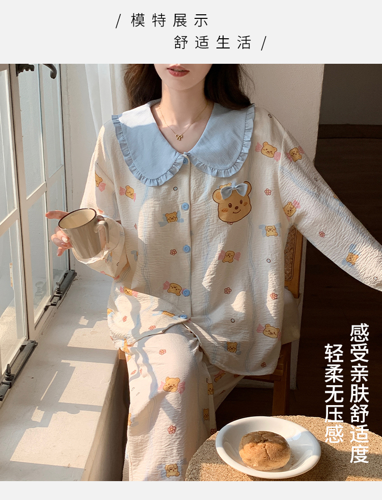 【GZ】无忧购可爱卡通云朵棉开衫家居服套装带胸垫 商品图10